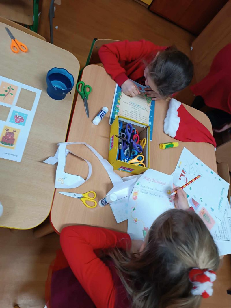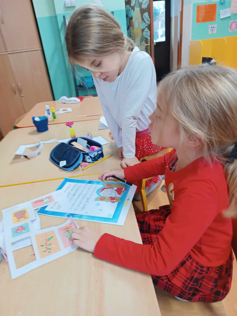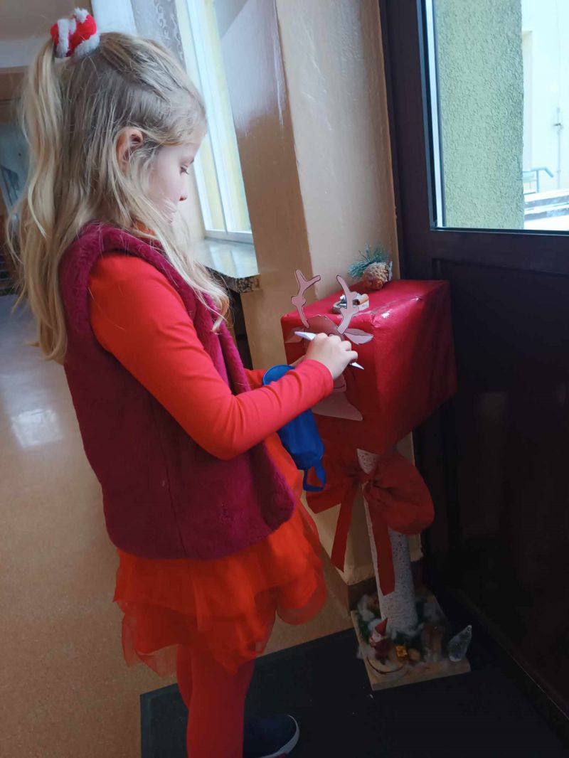 Mikołajki spędziliśmy na pisaniu listu do świętego Mikołaja i wrzucaniu ich do naszej świetlicowej skrzynki na listy oraz na ubieraniu choinki