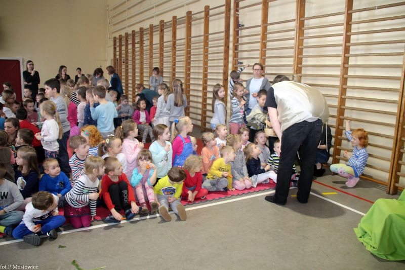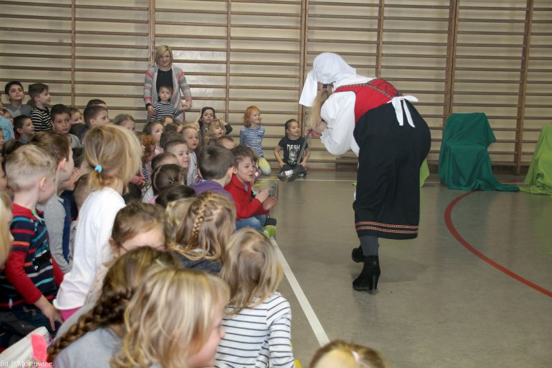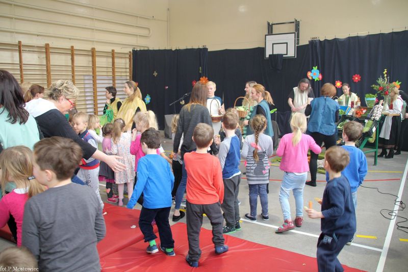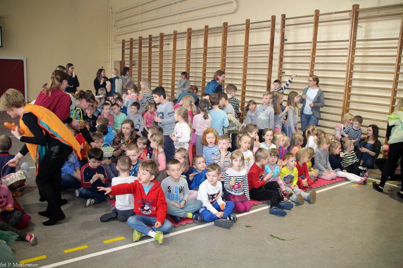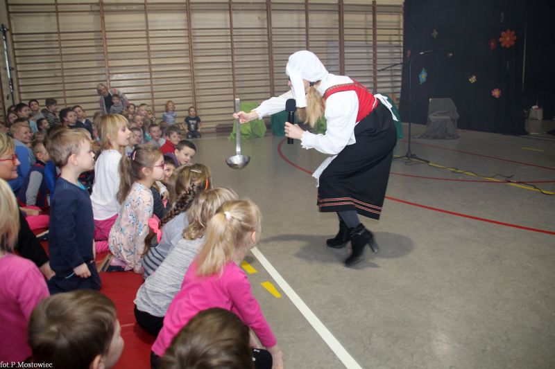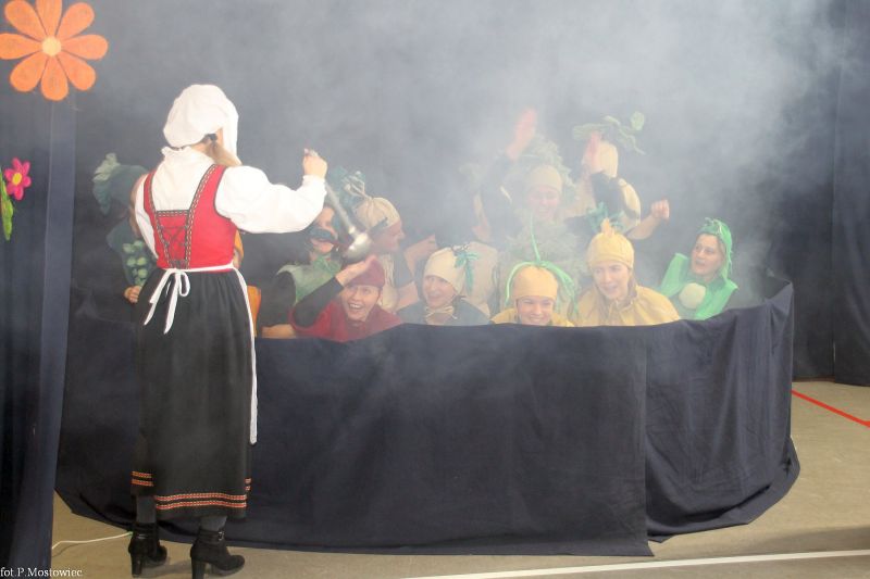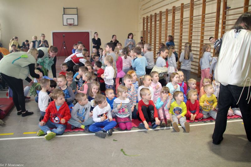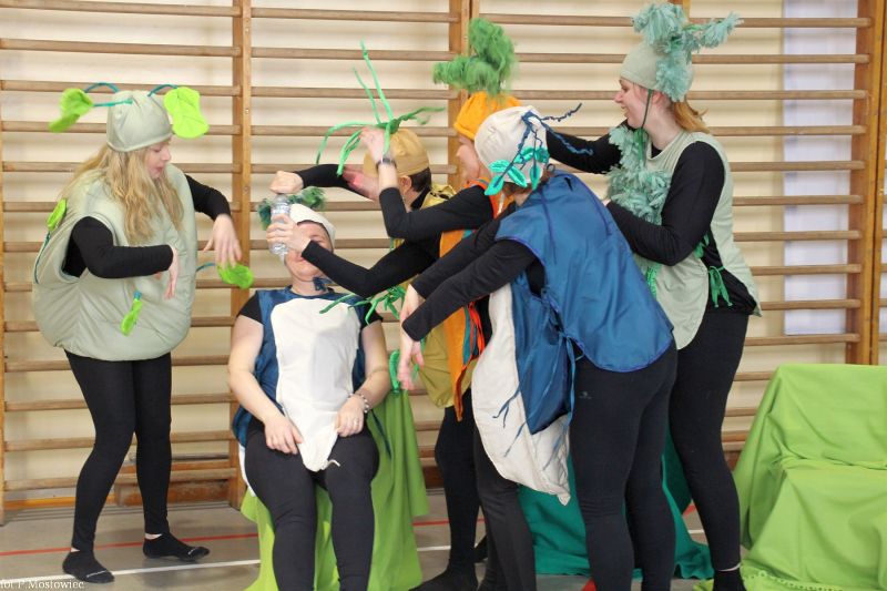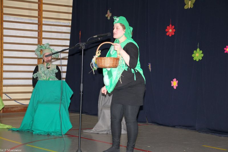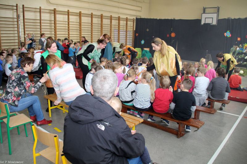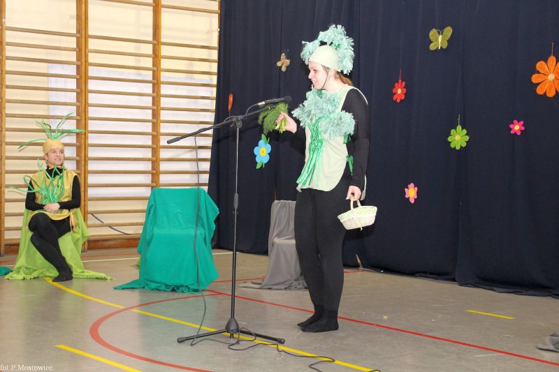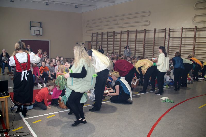 Było to bardzo barwne, pełne humoru przedstawienie na podstawie wiersza Jana Brzechwy „Na straganie”. Fascynująca scenografia, kolorowe kostiumy, wesołe postacie, humorystyczne dialogi oraz cudowny przekaz na temat wiosennych nowalijek, zdrowia i wartości odżywczych, a wszystko to przeplatane skoczną, rytmiczną muzyką wprowadziły wszystkich w radosny, wiosenny nastrój. Na koniec wszyscy mogli spróbować zdrowych, soczystych nowalijek i warzyw przygotowanych w koszyczkach.