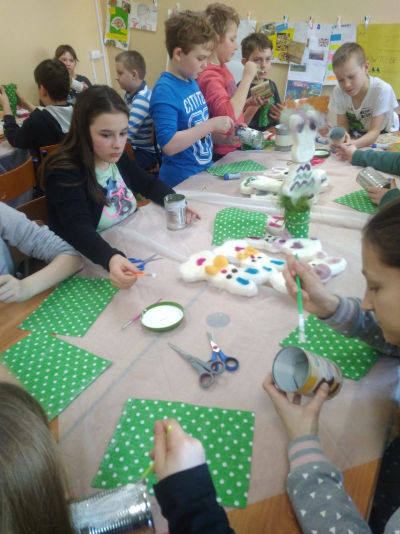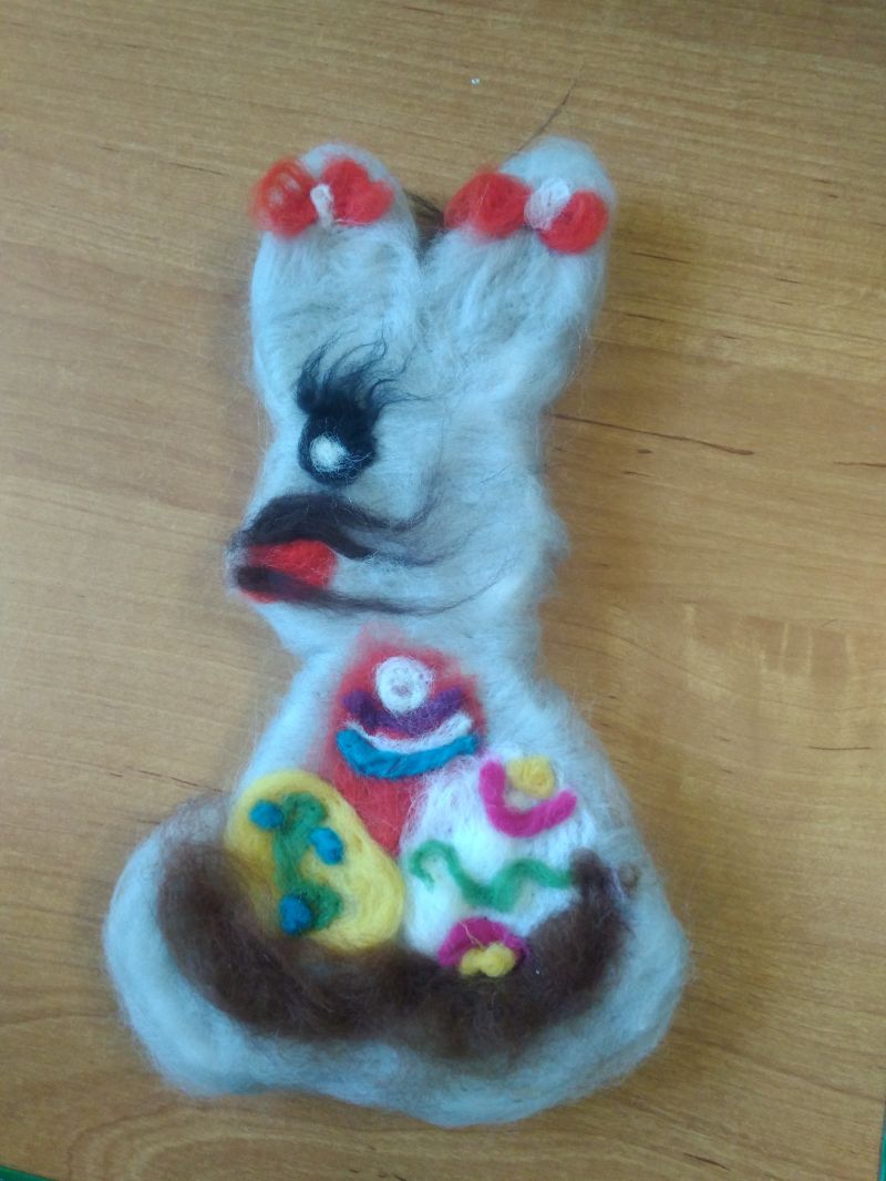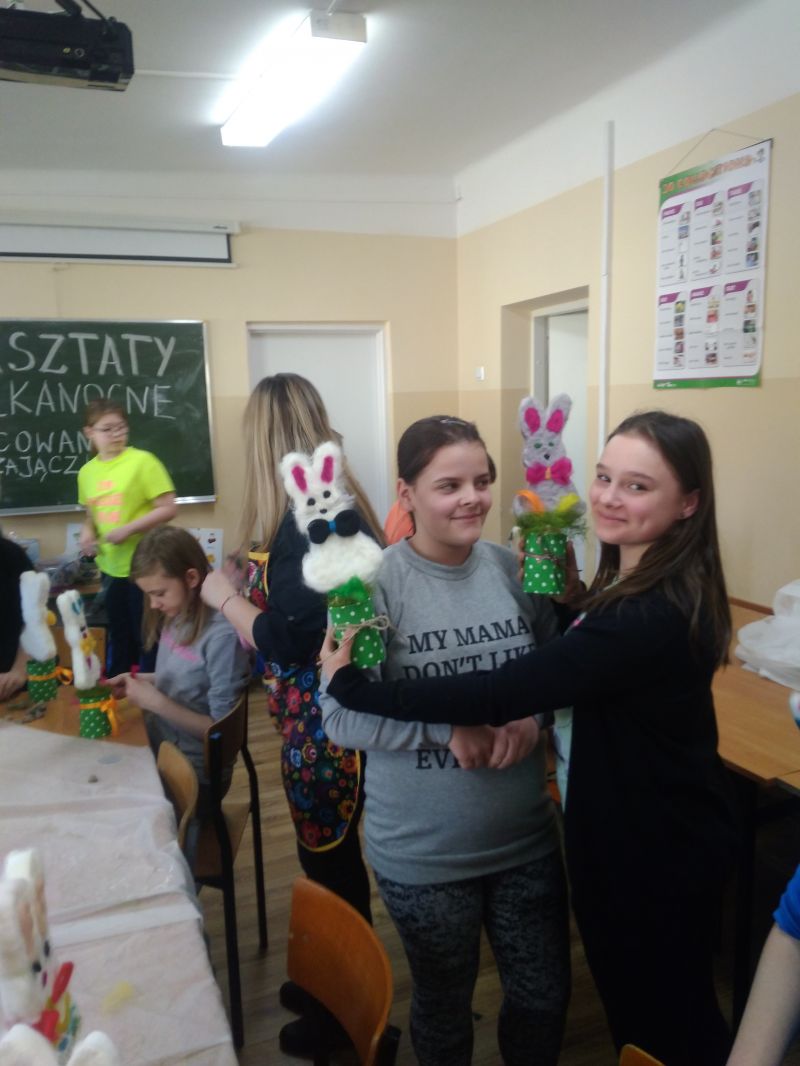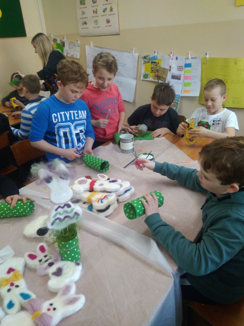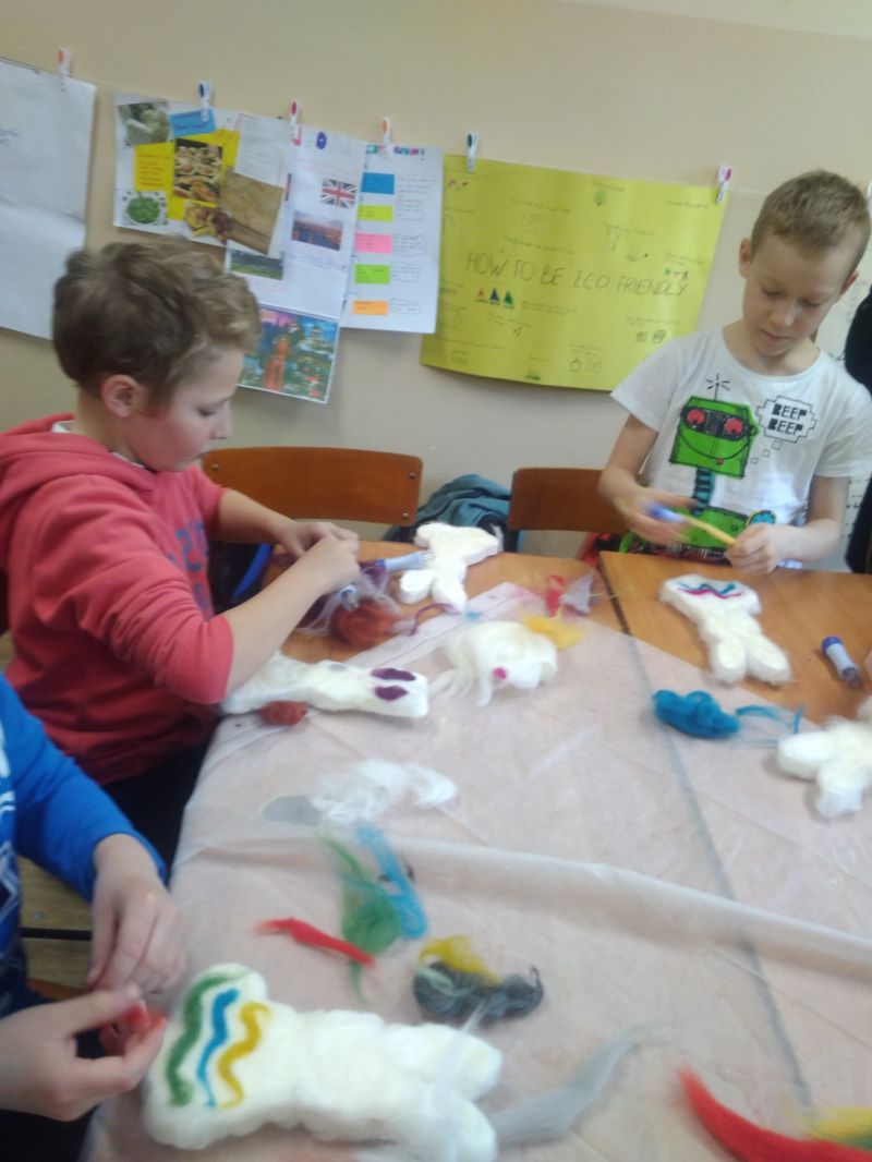 Dzieci wykonywały zajączki techniką filcowania wełny na sucho. Używały do tego specjalnych igieł. Wykonane własnoręcznie ozdoby wielkanocne będą w czasie zbliżających się Świąt dekorowały stoły i zadziwiały zaproszonych gości.