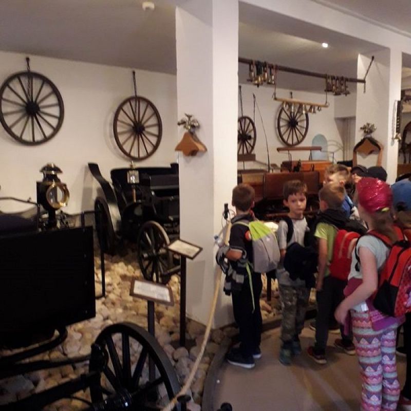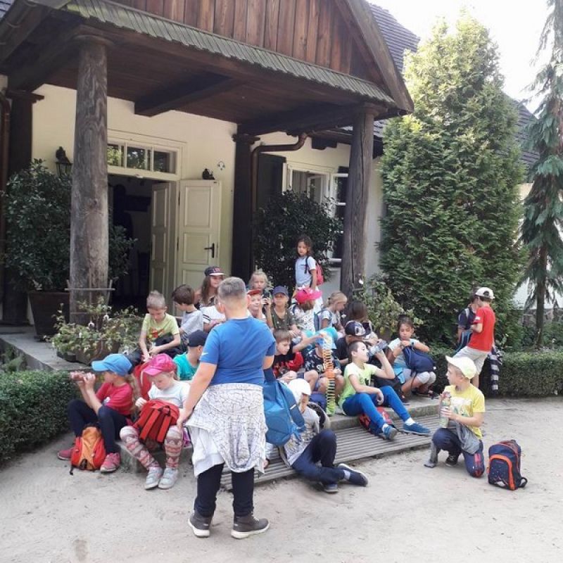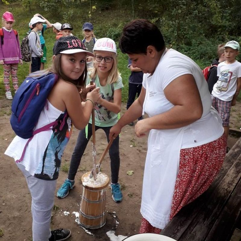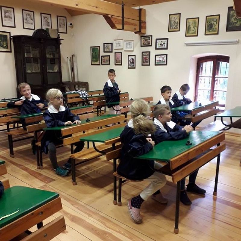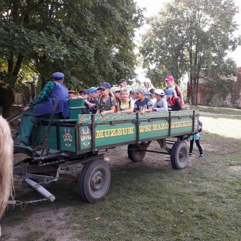 Dzieci miały okazję przenieść się w czasy z końca XIX i początku XX wieku. Oglądały doskonale zachowane zabudowania, zagrody i zwierzęta domowe. Niezwykle ciekawa okazała się lekcja kaligrafii odbywająca się w scenerii przypominającej dawną szkołę. Kolejnym nowym doświadczeniem było własnoręczne ubijanie masła a następnie zasłużony odpoczynek podczas przejażdżki wozem konnym. Uwieńczeniem wycieczki były zabawy na świeżym powietrzu i kiełbaska z grilla. Wycieczka klas trzecich do Sierpca