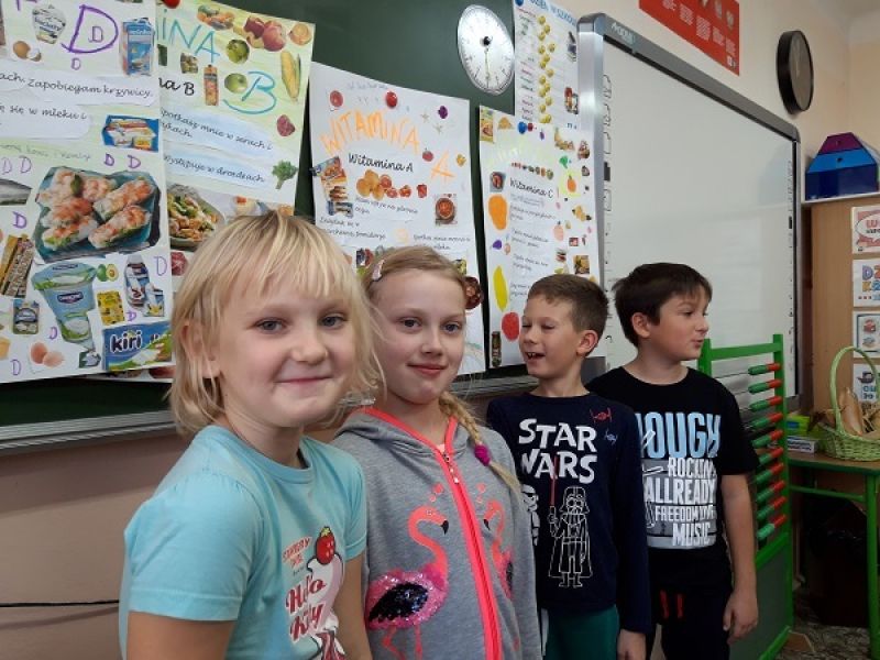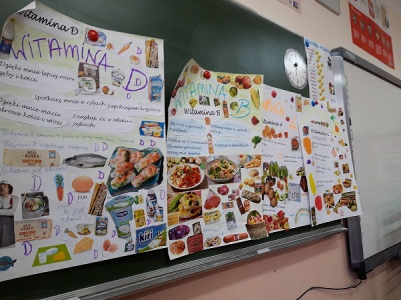 Uczniowie z klasy 2 B podczas pracy zespołowej ''Witaminki'', dowiedzieli się jakie są witaminy, co musimy jeść aby dostarczyć naszemu organizmowi witamin i w jakich produktach jest witamin najwięcej.