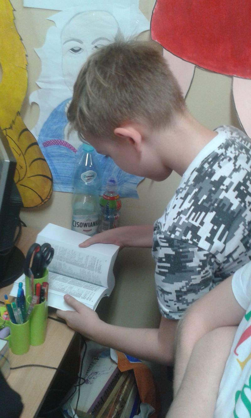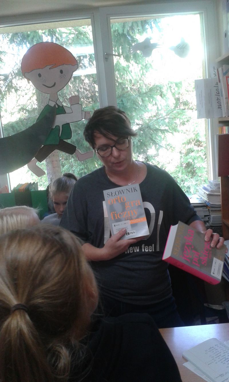 Uczniowie zostali ciepło przyjęci przez panią bibliotekarkę - Marzenę Czerniewicz, która zapoznała dzieci z księgozbiorem i przedstawiła zasady funkcjonowania biblioteki szkolnej. Uczniowie poznali rodzaje słowników i encyklopedii, z których można korzystać w czytelni. Wszyscy z zaangażowaniem uczestniczyli w wyszukiwaniu ciekawych informacji, trudnych słów i zasad ortograficznych w poszczególnych książkach. To były bardzo ciekawe zajęcia. Eliza Tomaszewska