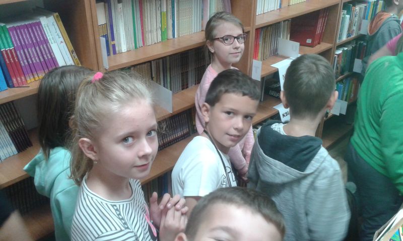 Klasy IVb i Vb podczas lekcji języka polskiego udały się do biblioteki szkolnej.