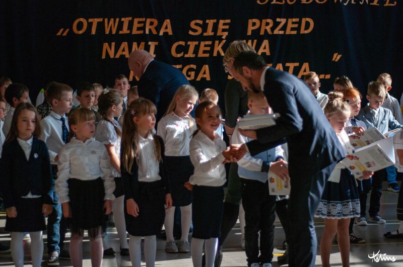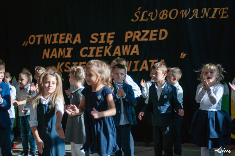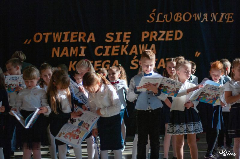 W tym dniu szkolne mury przyjęły do swojej braci uczniowskiej 45 roześmianych buź. Uczniowie klas pierwszych uroczyście złożyli ślubowanie, w którym obiecali godnie reprezentować siebie, swoją szkołę i Polskę. Wrażeń było co nie miara. Niech ten dzień na zawsze wyryje się w naszych sercach, a naszym najmłodszym uczniom życzymy sukcesów w nauce, mnóstwa przyjaciół i niezapomnianych chwil spędzonych w Szkole Podstawowej. Brawo Wy.