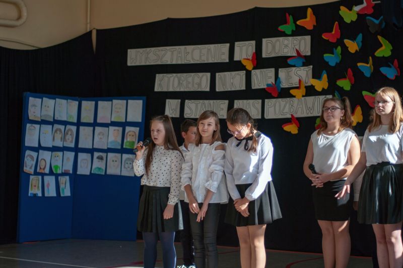 W tym dniu uczniowie klas szóstych razem ze szkolnym chórem przygotowali wspaniałą akademię. Za pomocą wierszy i piosenek uczniowie podziękowali wszystkim nauczycielom oraz pracownikom szkoły za trud, cierpliwość oraz pomoc w trudnych chwilach. Wszyscy zaproszeni goście otrzymali ręcznie wykonane przez uczniów laurki z życzeniami. To była bardzo udana akademia, wszyscy uczniowie świetnie się zaprezentowali.