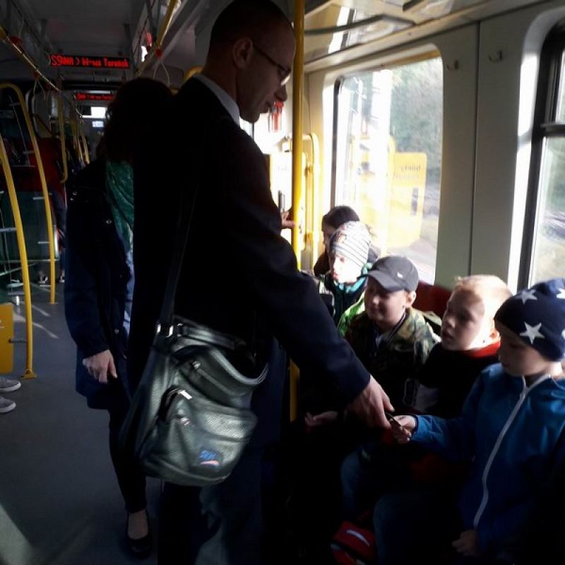 Wielu przeżyć i emocji dostarczyło uczniom samodzielne kasowanie biletu i sprawdzanie ich przez kontrolera. Był to sprawdzian znajomości zasad kulturalnego i bezpiecznego podróżowania .