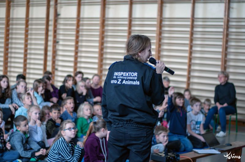 i o właściwym traktowaniu naszych braci mniejszych, czyli zwierząt. Pouczali, że nikt nie jest bezradny, gdy widzi, że jakieś zwierzę jest źle traktowane. Zawsze można zgłosić się do Animals!!! Bezcenne były także wskazówki, jak odczytywać język psów i kotów, aby właściwie rozpoznawać ich intencje czy nastroje. Nie wolno skupiać się jedynie na naszych pupilach, ale dbać także o zwierzęta gospodarskie, bo one również żyją, czują!