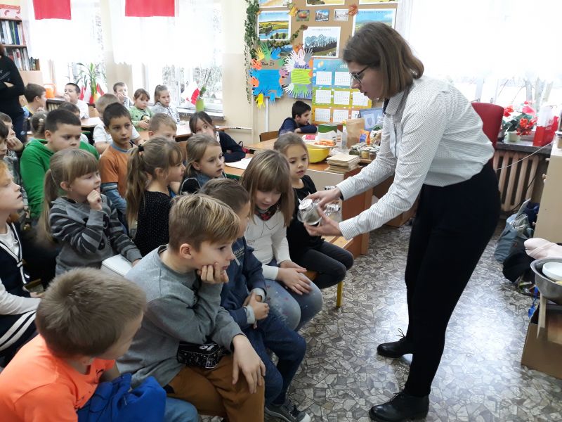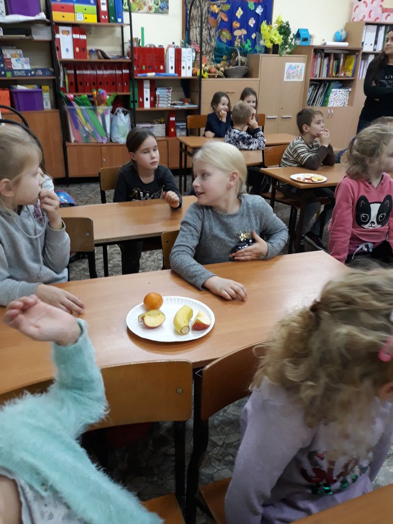 Zajęcia były bardzo pouczające i ciekawe, dzieci zasypywały prowadzącą pytaniami, dotykały i smakowały produkty, które przyniosła dla nich Pani Agata oraz zapewniła szkolna stołówka. Oczywiście, tylko zdrowe produkty np. chipsy owocowe i warzywne, świeże owoce i warzywa, do oglądania różne rodzaje kasz i płatków. Pani Agata służyła radą wszystkim, którzy się do Niej zgłosili i rozdawała sprawdzone na swoich dzieciach przepisy na wartościowe i pyszne dania. Dziękujemy!!!