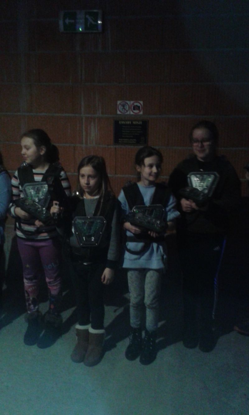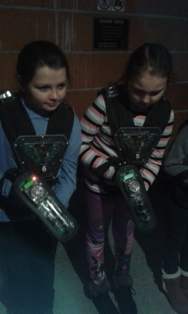 Po wspaniałych zajęciach muzealnych, dzieci wzięły udział w zabawach w sali LASER- WAR. Pod okiem instruktorów uczniowie pokonywali laserowy labirynt i stoczyli walkę w laserowego paintballa.