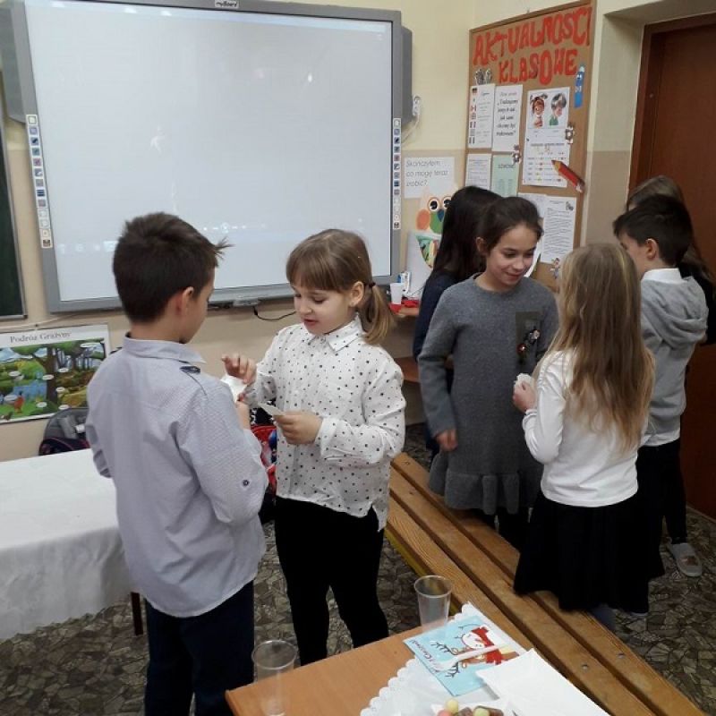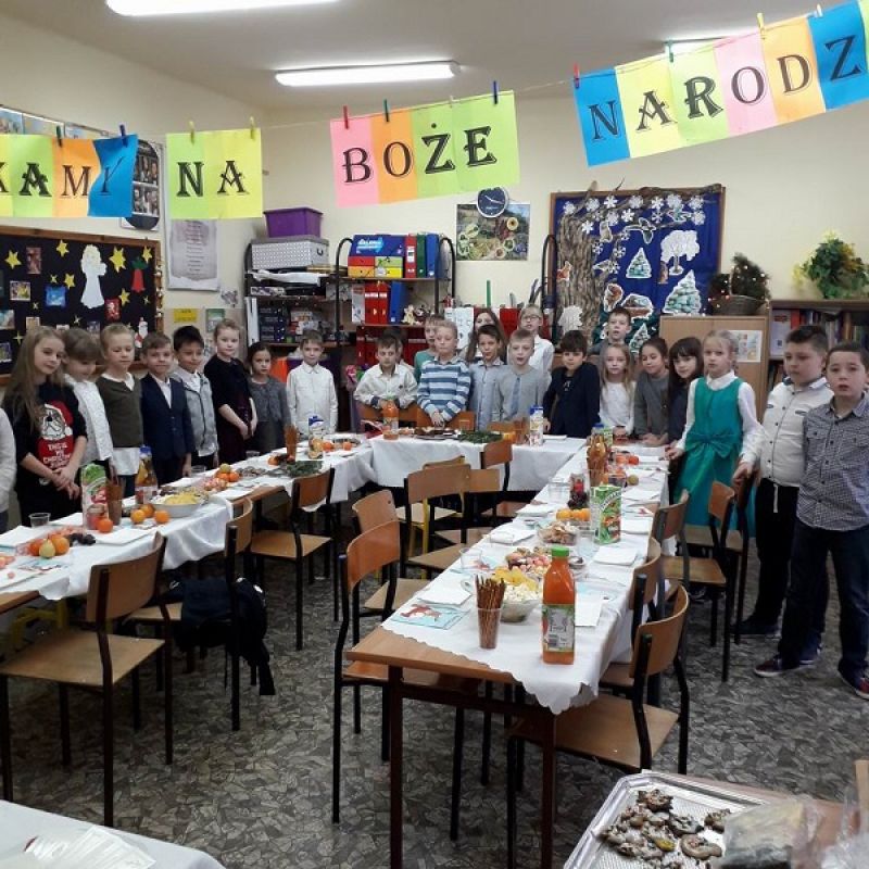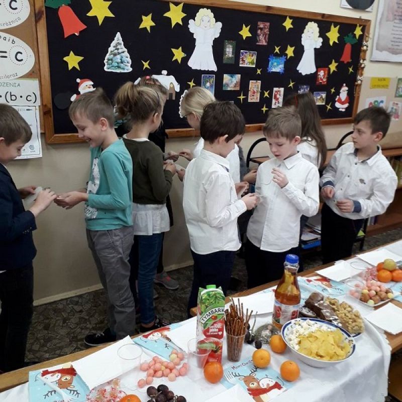 W ten dzień obie klasy trzecie spotkały się przy jednym stole. Uczniowie dzielili się opłatkiem, składali sobie świąteczne życzenia i w radosnym nastroju śpiewali kolędy.
