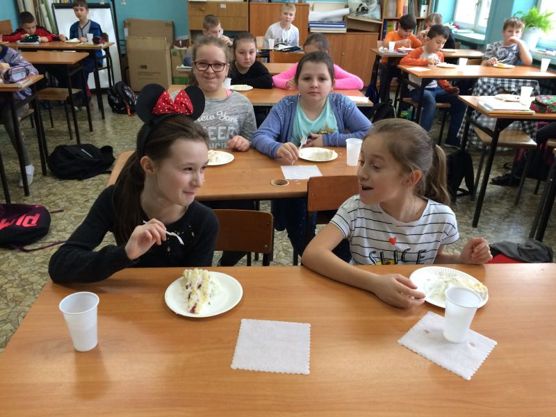 W nagrodę za rekordowy wynik klasa otrzymała z rąk pani wicedyrektor Beaty Narel wspaniały tort. Jesteśmy z siebie BARDZO DUMNI!!!