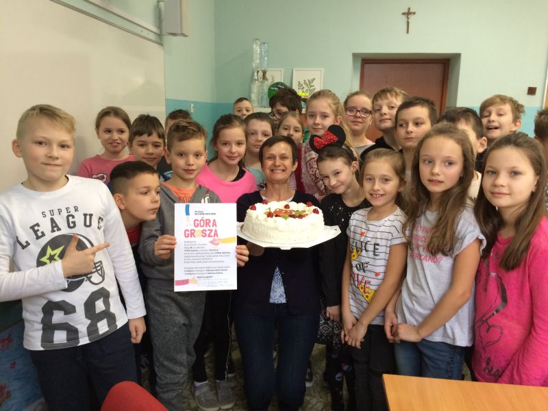 Klasa IV b zwyciężyła w konkursie „Góra grosza” . Zebraliśmy 393,43 zł..