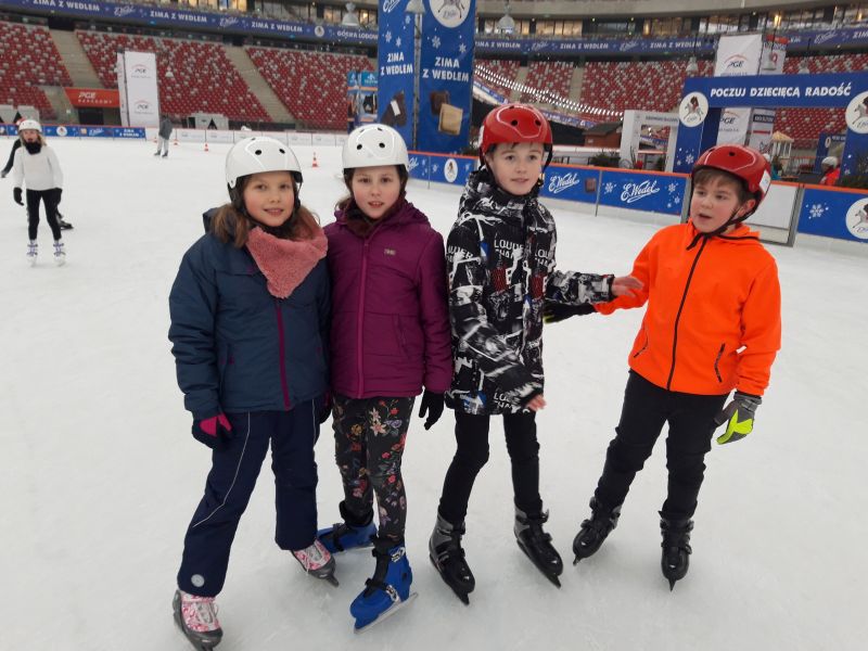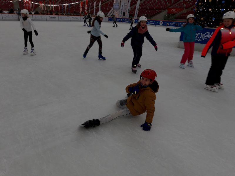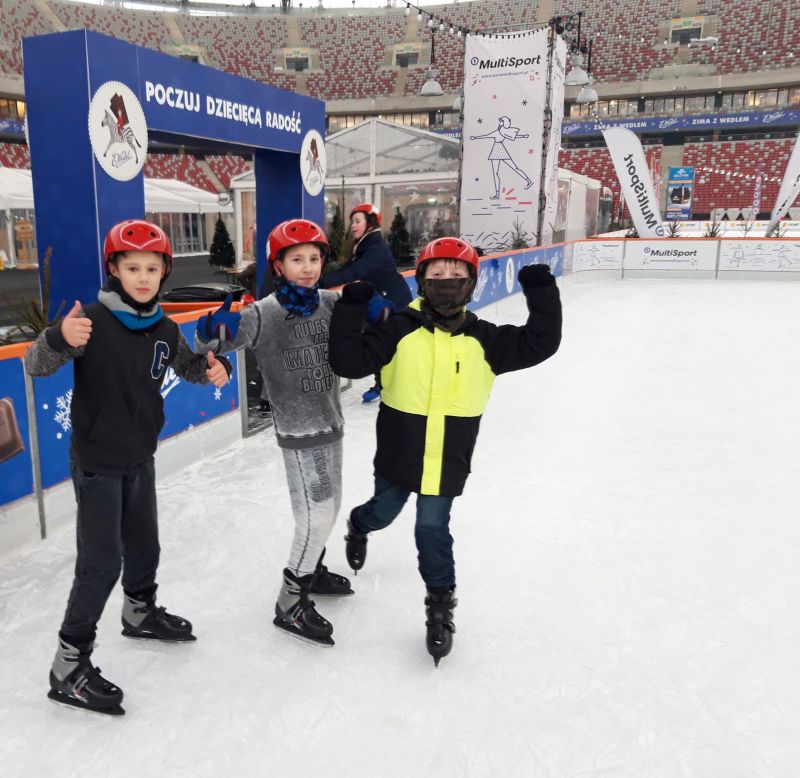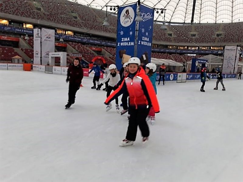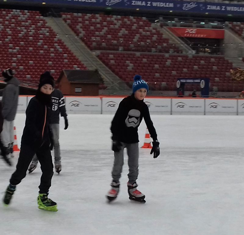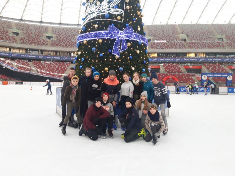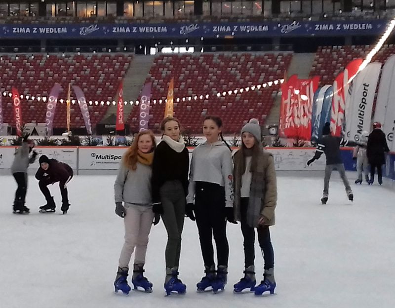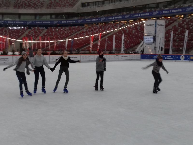 A to za sprawą wyjazdu na lodowisko na Zimowy Narodowy. Dla niektórych było to pierwsze spotkanie z jazdą na łyżwach, dla innych to czas na doskonalenie swoich umiejętności łyżwiarskich. Nie obyło się bez upadków, obolałych nóg, ale mimo wszystko był to super spędzony czas. Uczniowie zadowoleni wrócili do szkoły a niektórzy już planowali następny wyjazd na lodowisko.