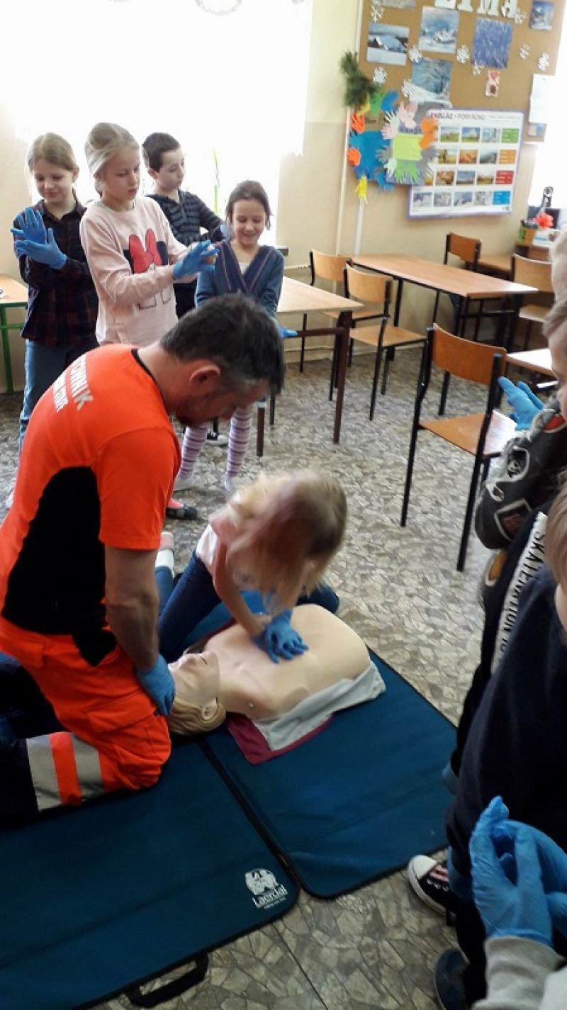 We wtorek 19 lutego 2019r klasa III b pod fachowym okiem ratownika medycznego uczyła się udzielać pierwszej pomocy..