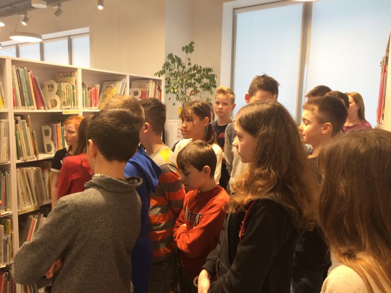 Uczniowie zapoznali się z ofertą biblioteki i podczas zajęć z zaangażowaniem poznawali dość trudne zasady samodzielnego wyszukiwania książek. Pani edukatorka zaprezentowała dzieciom stronę internetową biblioteki i wytłumaczyła, w jaki sposób rezerwować książki, którymi są zainteresowani.