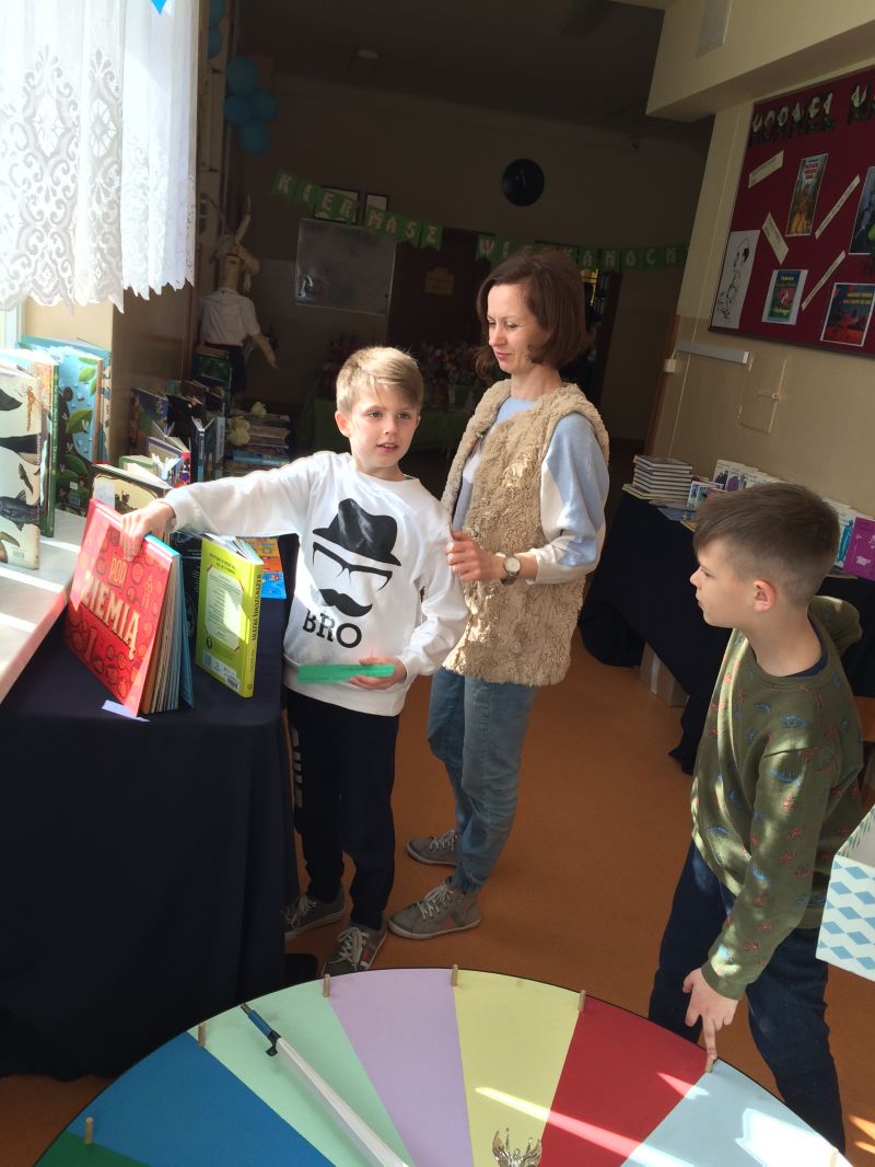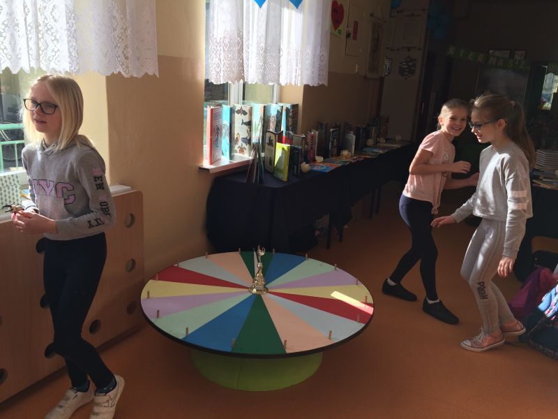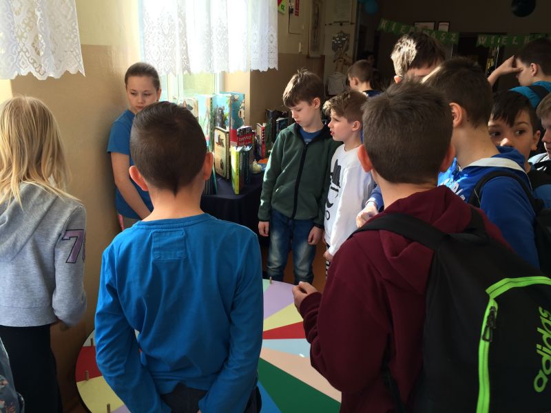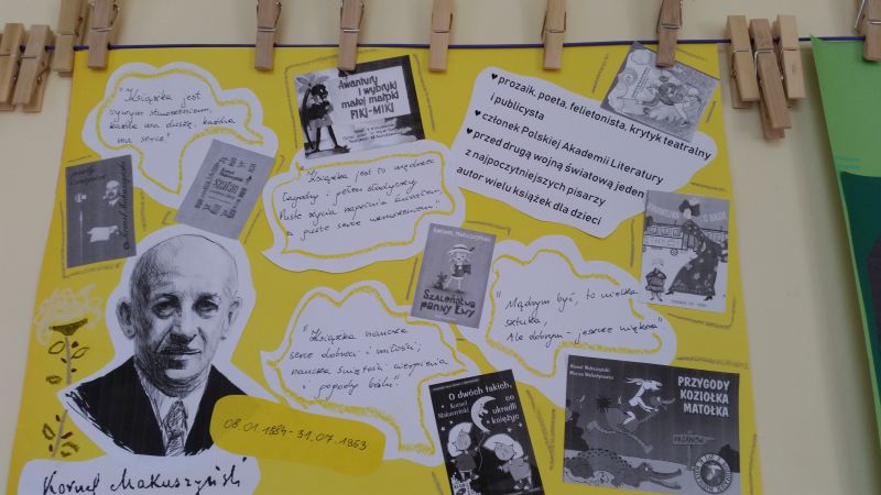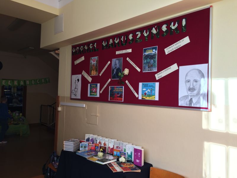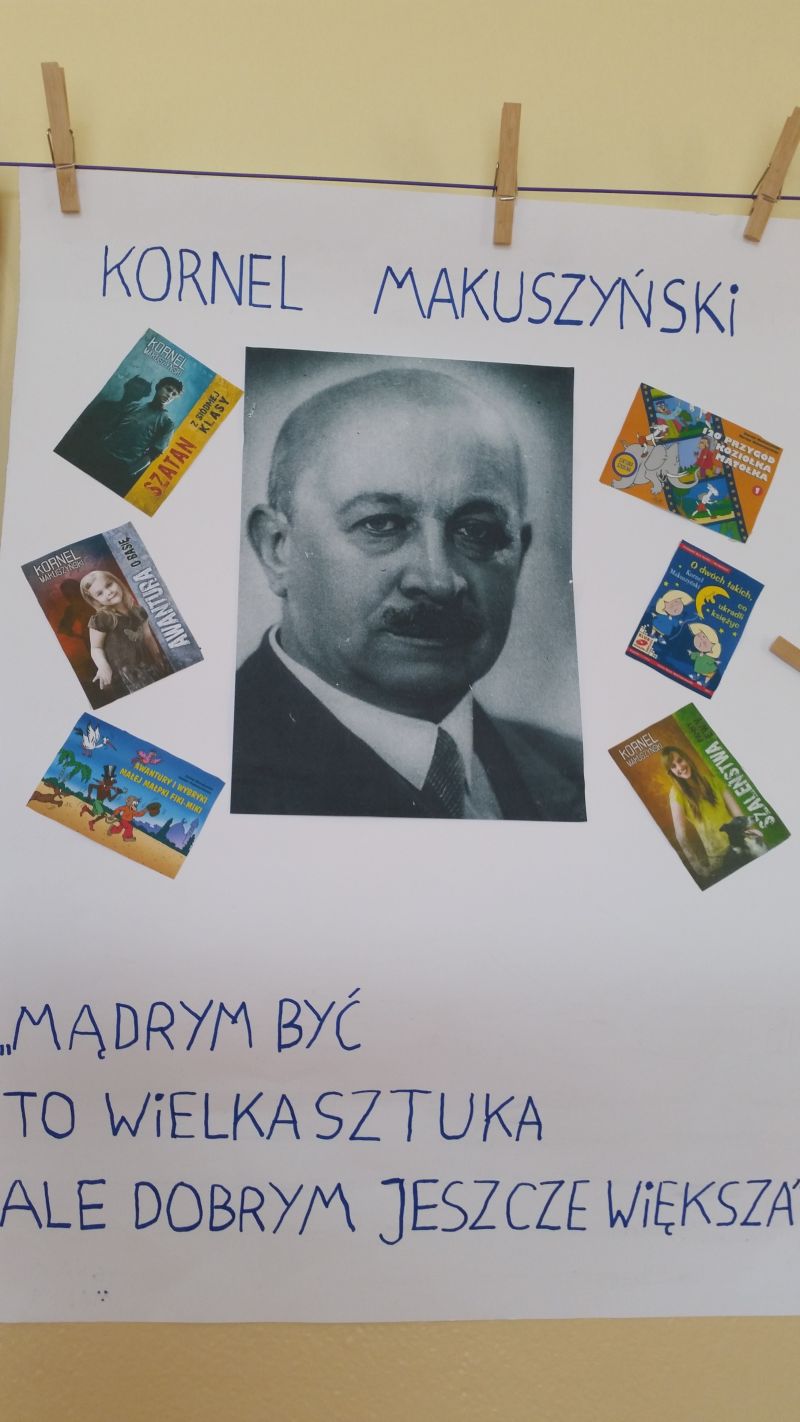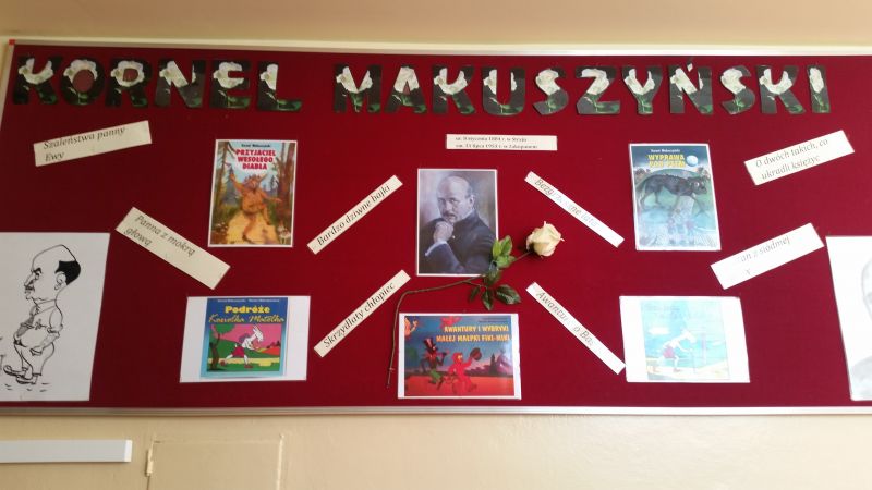 Na korytarzu zawisła gazetka poświęcona życiu i twórczości naszego patrona, a na stołach pojawiły się najcenniejsze zbiory naszej biblioteki szkolnej, zarówno te dotyczące życia i twórczości Kornela Makuszyńskiego, jak i najnowszej literatury popularnonaukowej dla dzieci. Ponad 100 uczniów wzięło udział w kręceniu Kołem Fortuny, na którym ukryte były trudne pytania językowe, przyrodnicze i te, związane z Kornelem Makuszyńskim oraz bohaterami utworów pisarza. Dzieci oprócz wiedzy, musiały wykazać się umiejętnością wyszukiwania informacji w książkach popularnonaukowych oraz korzystania ze słowników. Nagrodami były ołówki z pięknie wykonaną, drewnianą główką Koziołka Matołka.
