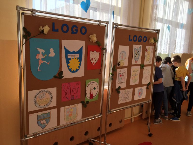 Na parawanach możemy podziwiać rysunki z propozycjami nowego logo naszej szkoły. Prace są wspaniałe.