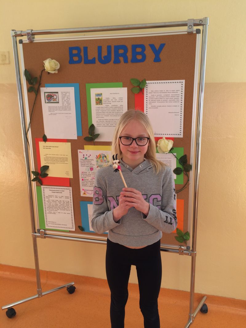 Kilka dni wcześniej uczniowie otrzymali zadanie napisania blurbów do swoich ulubionych książek. Zadanie zostało wykonane fantastycznie, a najciekawsze pracy zostały umieszczone na gazetce szkolnej. Dzieci, które uważają książkę za swoją przyjaciółkę, mogły w tym dniu sfotografować się ze swoją ulubioną lekturą. Zdjęcia także wkrótce ozdobią ściany naszej placówki.