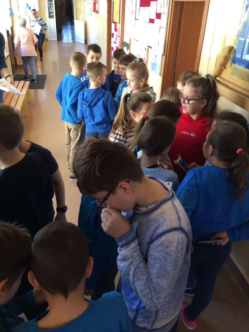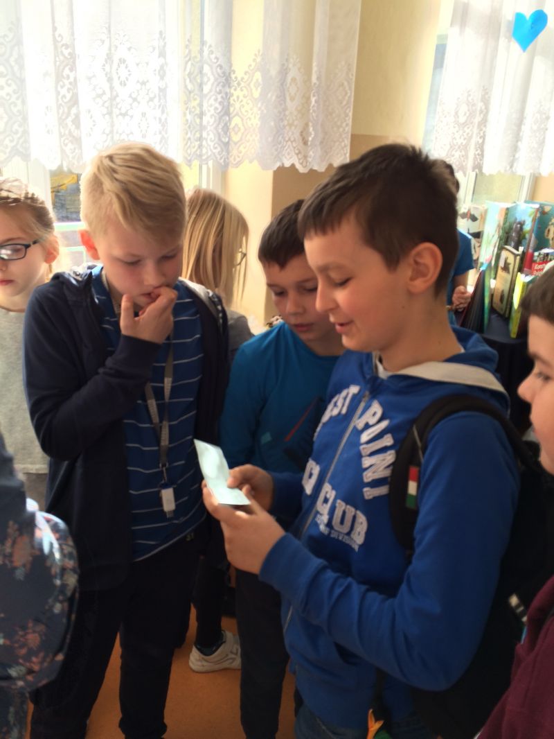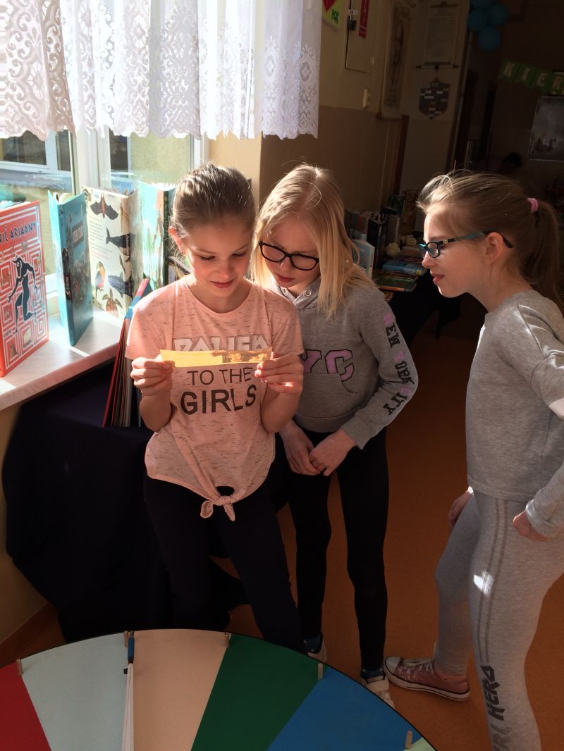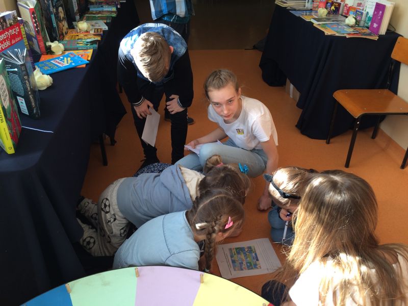 Wtorek od rana obfitował w liczne atrakcje. Uczniowie od rana uczestniczyli w grze terenowej koordynowanej przez Panią Wicedyrektor Beatę Narel. Gra będąca sposobem łączenia rozrywki z nauką, polegała m.in. na samodzielnym rozwiązywaniu przez uczniów zadań ściśle związanych z tematem naszego święta. Za pomocą aplikacji skanowania kodów QR, w których zaszyfrowane zostały pytania, uczniowie z wielkim zaangażowaniem i wypiekami na twarzach wykonywali poszczególne polecenia, ćwicząc, m.in.: umiejętność pracy w zespole i pod presją czasu, logiczne myślenie, czytanie ze zrozumieniem, wyszukiwanie informacji w tekście literackim, umiejętne i celowe korzystanie z różnych źródeł informacji, itp.