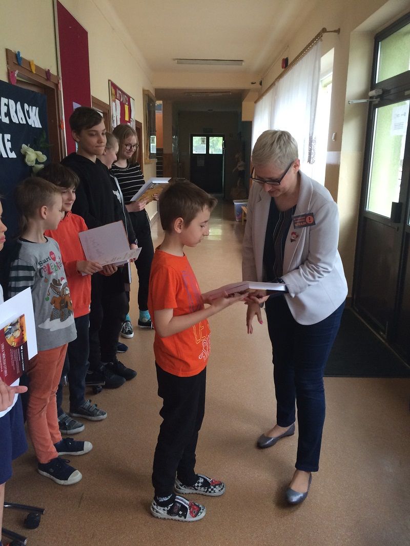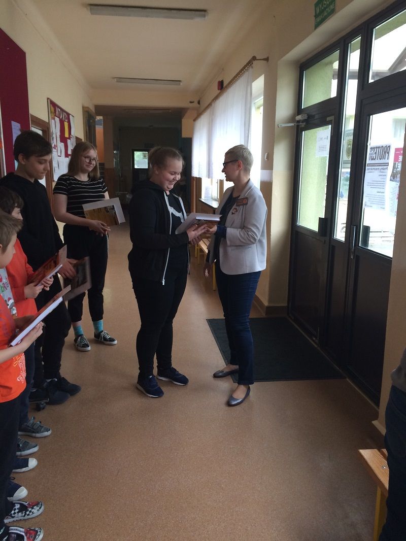 Wszyscy laureaci i uczestnicy otrzymali z rąk Pani Natalii Guzowskiej – Dyrektora Szkoły Podstawowej im. Kornela Makuszyńskiego w Skrzeszewie, dyplomy i nagrody rzeczowe.