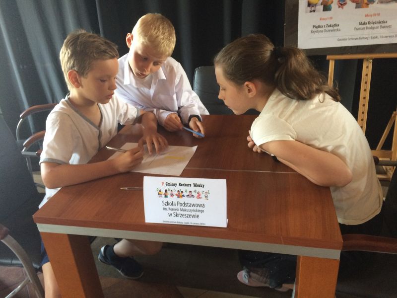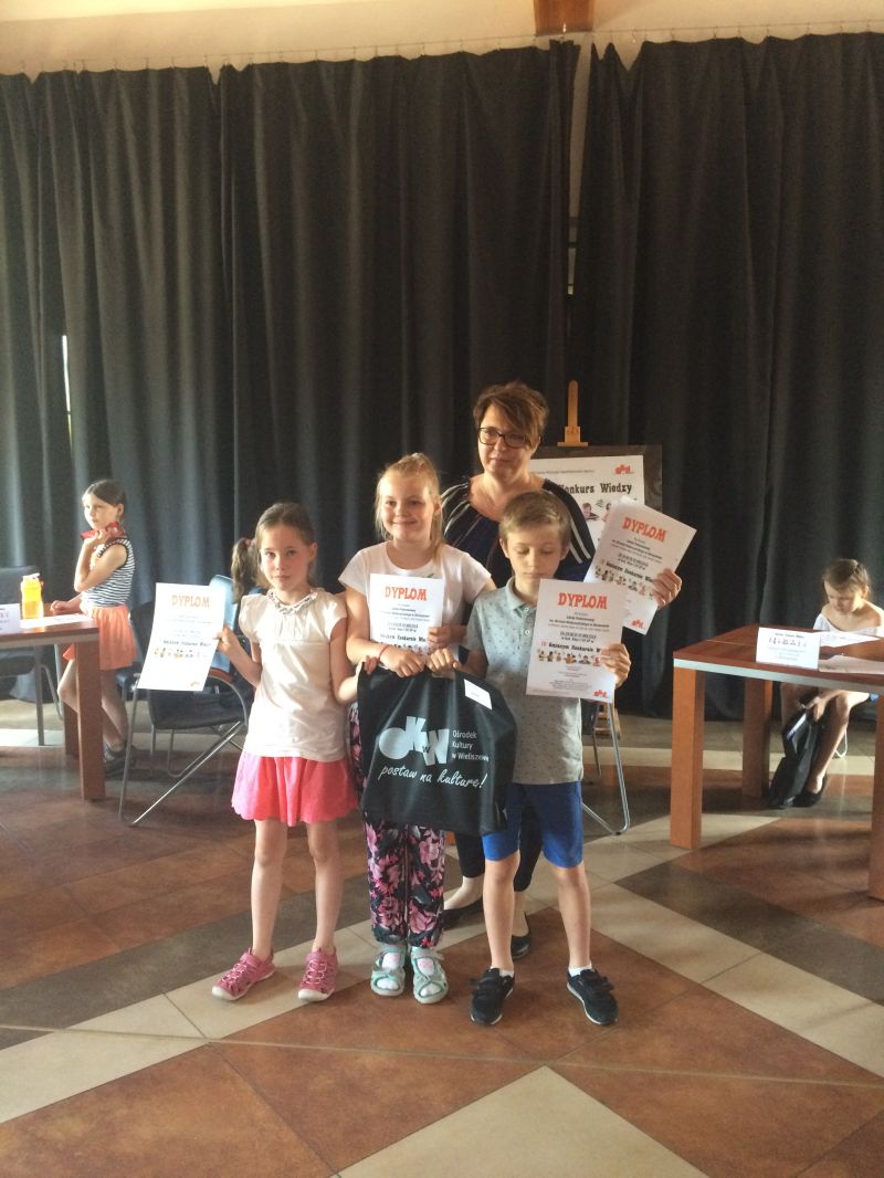 Reprezentanci klas I-III w składzie: Natalia Bajer, Jan Macuk i Julia Twardo – Hamar zajęli II miejsce. Reprezentacja klas IV-VI w składzie: Cezary Jagodziński, Maja Puchala i Filip Puchala odniosła zwycięstwo zajmując I miejsce.