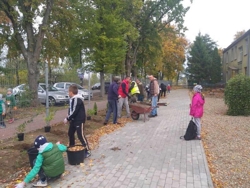 Pracującym towarzyszyła słoneczna aura i wesoła atmosfera. Po wykonaniu zadania na wszystkich czekał poczęstunek. Serdecznie dziękujemy wszystkim zaangażowanym w upiększeniu otoczenia szkoły. Będziemy dbali o nasze rośliny.