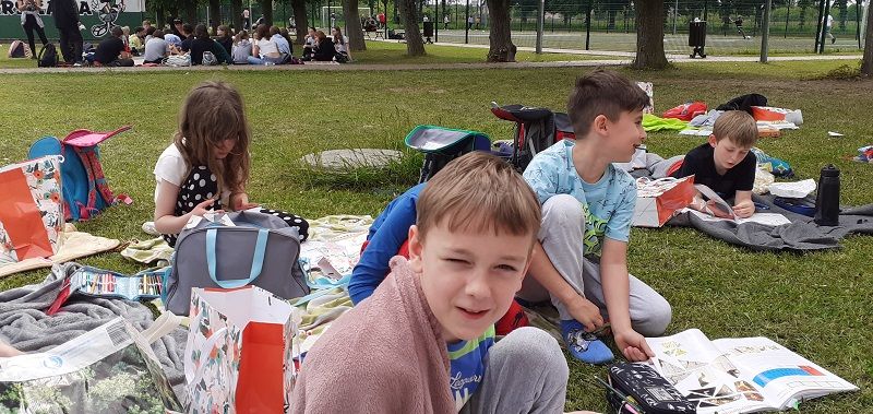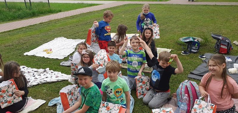 Piknik odbył się na świeżym powietrzu obok szkoły. Na nietypowej lekcji czytaliśmy fragmenty lektury ''Afryka Kazika'', rozwiązywaliśmy krzyżówki o Afryce, wspólnie spędzaliśmy czas, a dzieci cieszyły się z prezentów z okazji Dnia Dziecka.
