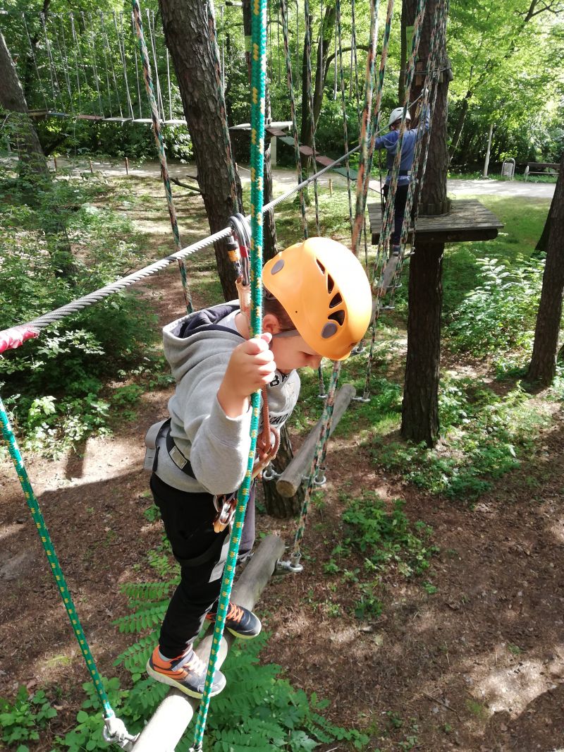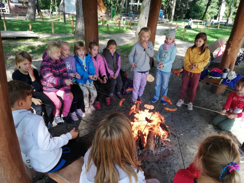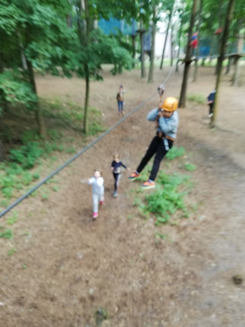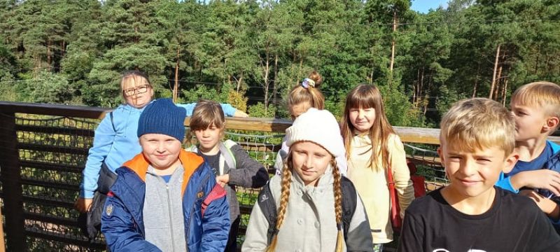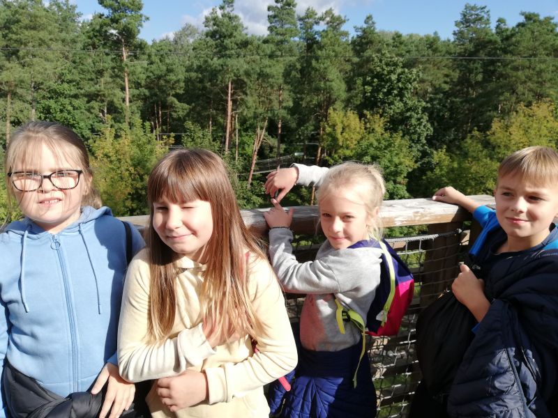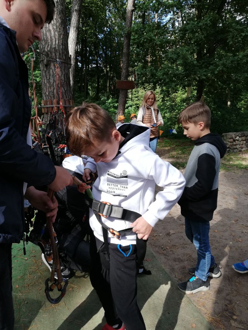 Uczniowie podziwiali uroki Parku Doliny Wkry, przeszli się ścieżką dydaktyczną w koronach drzew oraz poznali zwyczaje zwierząt. Następnie sprawdzili swoją formę fizyczną na siłowni nad brzegiem rzeki. Jednak największą atrakcją był park linowy , który okazał się prawdziwym wyzwaniem dla uczniów. Na zakończenie intensywnego dnia dzieci miło spędziły czas przy ognisku piekąc kiełbaski.