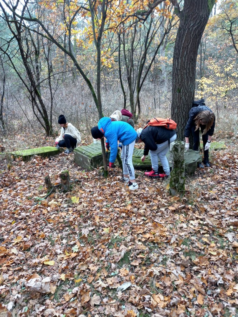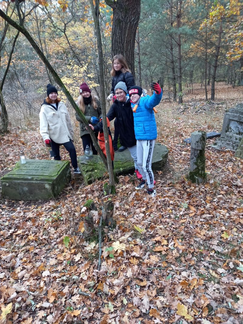 Uczniowie naszej szkoły , którzy należą do Szkolnego Koła PCK wraz z opiekunem Małgorzatą Szadura udali się tam rowerami .Chętnie i z dużym zaangażowaniem porządkowali zaniedbane i opuszczone groby . Sprzątanie już po raz szósty organizowało stowarzyszenie EMKA.