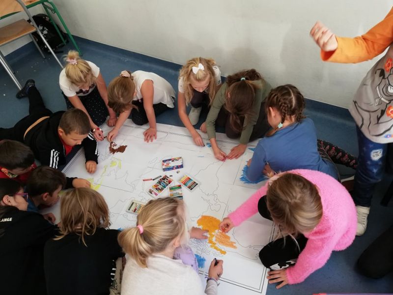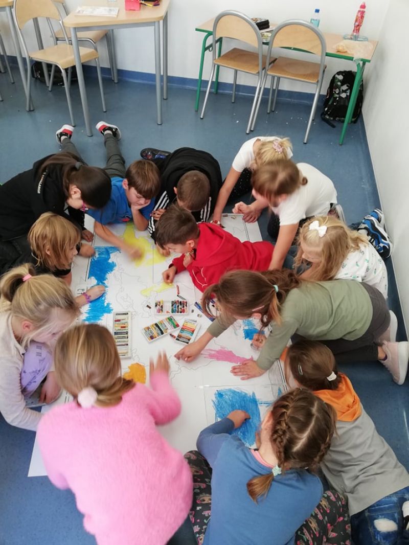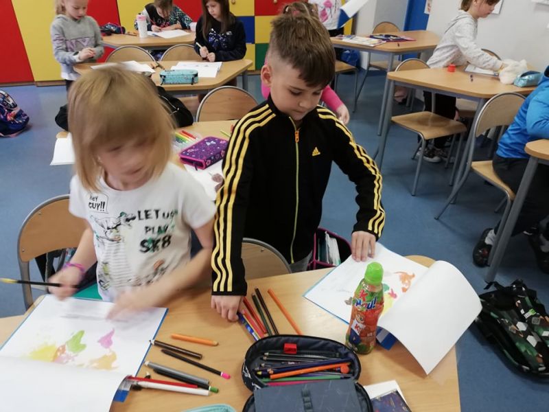 Wspólnie tez wybraliśmy sie do Włoch, gdzie poznaliśmy losy psa ,, Lampo ", którego poznaliśmy w ramach projektu ,, Lekturki spod chmurki". Odszukaliśmy i zaznaczyliśmy na mapie miejsca, które odwiedził bohaterki pies. W ramach opracowania pozycji wykonaliśmy lekturniki, opisaliśmy psa Lampo, stworzyliśmy plan wydarzeń , jak również utrwalaliśmy poznane części mowy. Zapoznaliśmy się zawodem kolejarza.