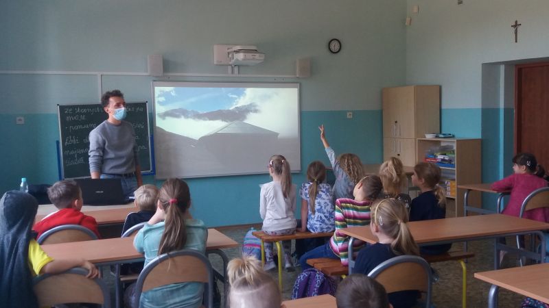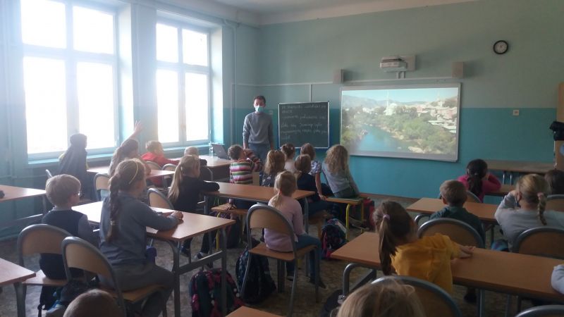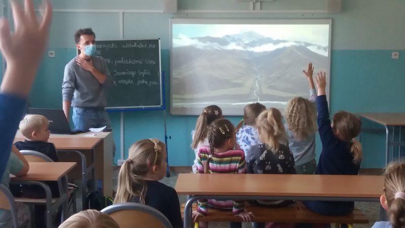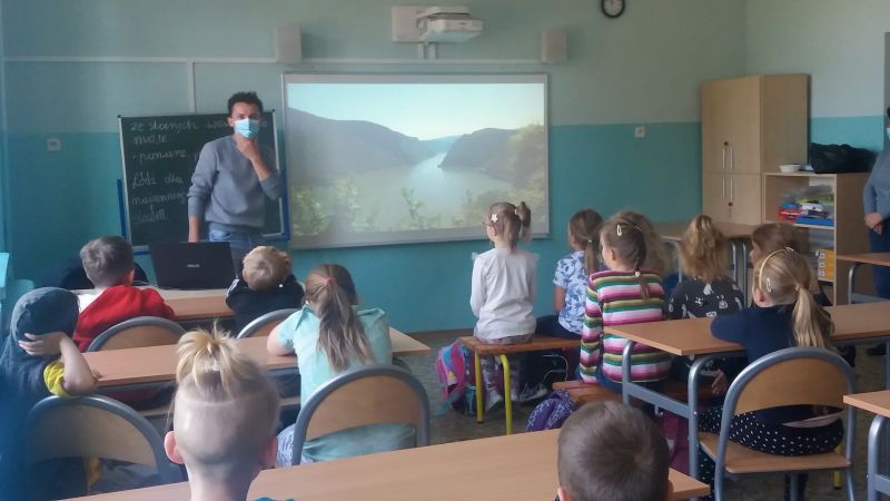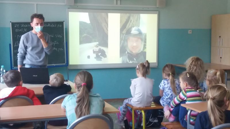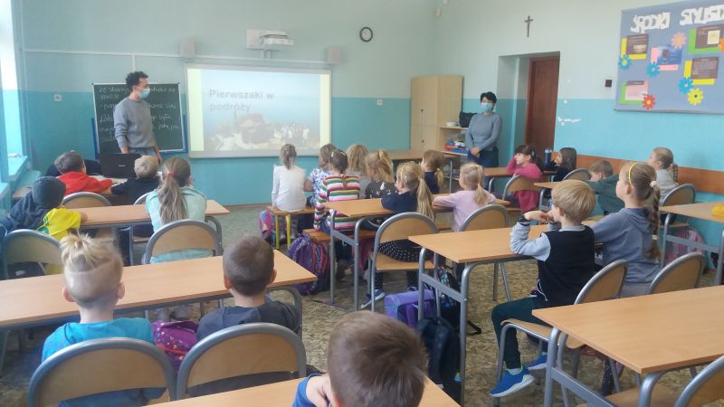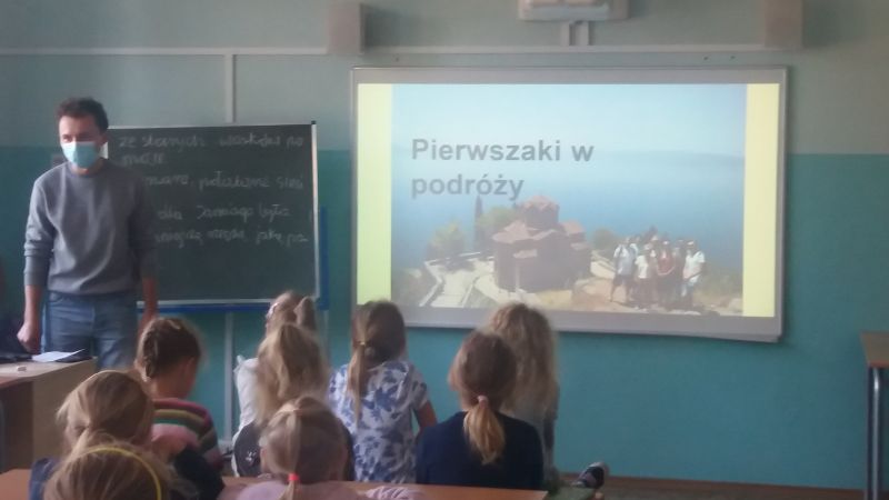 Klasa 1a,1b, 1c gościły w szkole Pana Mateusza Kowalika, który przez pięć miesięcy podróżował po wielu krajach Europy. Pan Mateusz pokazał uczniom przepiękne krajobrazy; ludzi, których poznał, ich kulturę, zwyczaje oraz tradycyjne potrawy jakie mógł próbować . Opowiadał w jaki sposób przygotował się do tak długiej podróży. Dzieci były bardzo zainteresowanie tym co mówił Pan Mateusz i zadawały wiele pytań niejednokrotnie zaskakujących naszego gościa.
