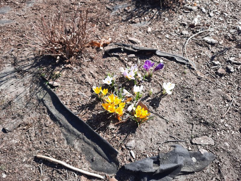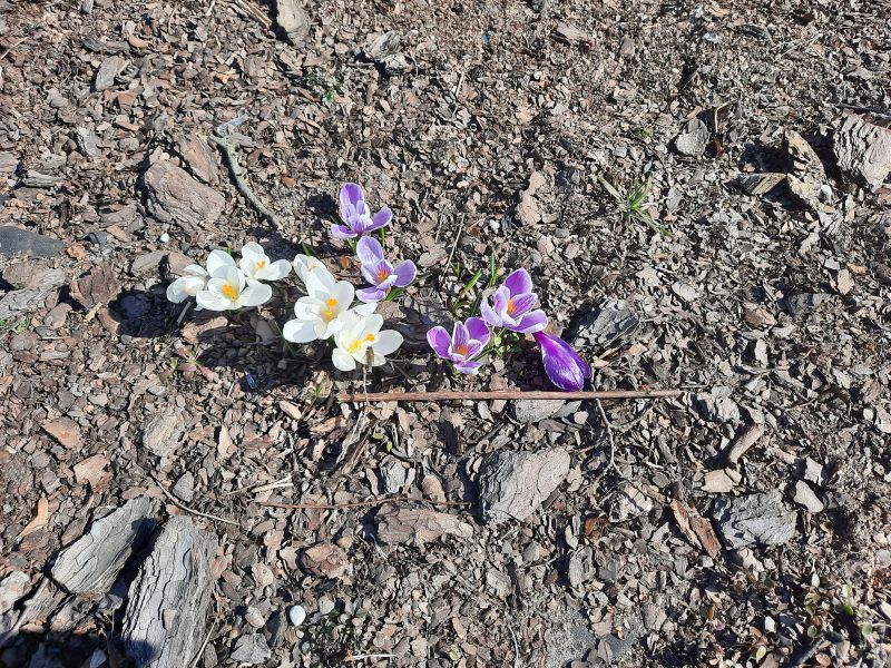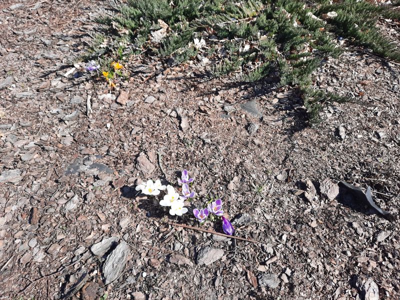 się znaleźć ich całkiem sporo, po drodze zauważyły krokusy rosnące w szkolnym