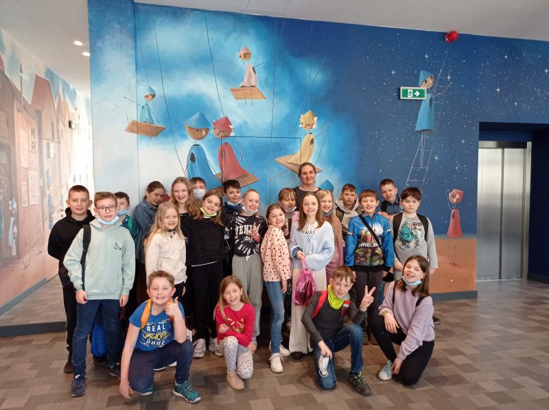 Dnia 23.03.2022r. klasy trzecie wybrały się na wycieczkę do warszawskiego Teatru "Baj" na spektakl pt. „ Niesamowite przygody dziesięciu skarpetek". Celem wycieczki było między innymi rozbudzanie zainteresowania kulturą oraz wyzwalanie pozytywnych uczuć i emocji. Dzieci poznały przygody skarpetek i dowiedziały się, że na bajki nigdy nie jest za późno. :-)