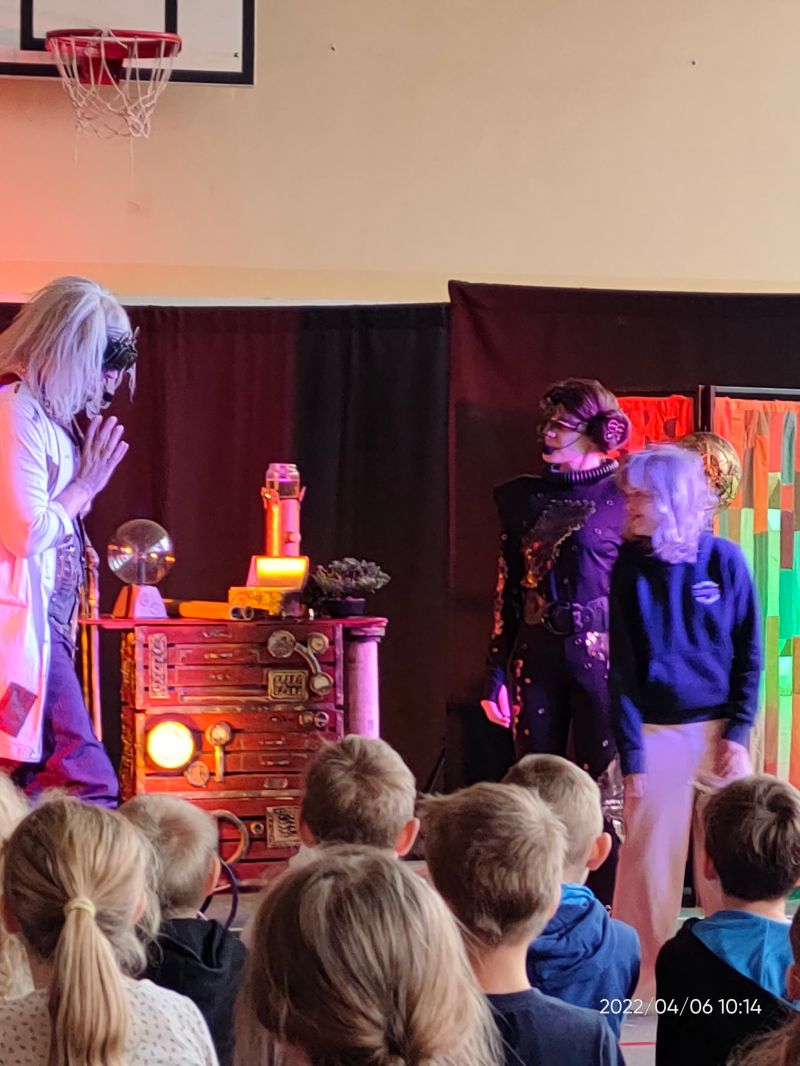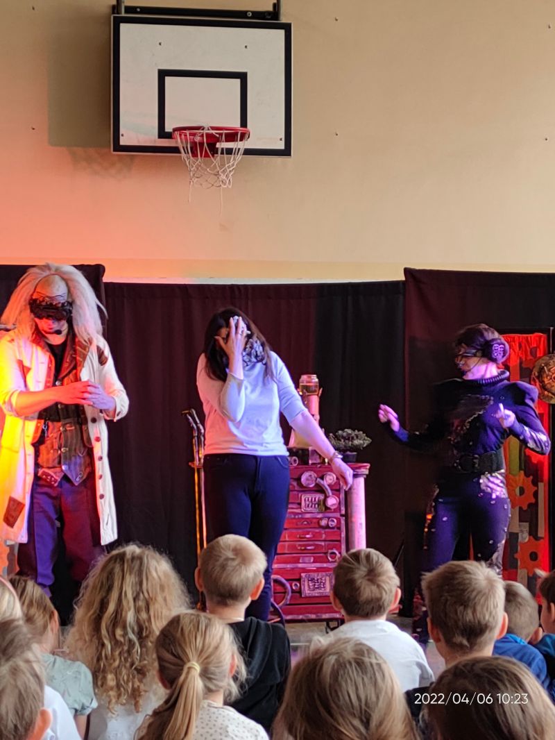 Do naszej szkoły przybył teatr Bajaderka ze spektaklem Burza mózgów. Zaprosił wszystkich ciekawskich świata do tajemniczego, podziemnego laboratorium wielkiego Doktorka Wątróbki, gdzie wspólnymi siłami uruchomił niepowtarzalną Maszynę Parową! Przeprowadził wspólnie różne eksperymenty, doświadczenia oraz zbadał wpływ różnych substancji na nasze zdrowie i życie. Pomocny okazał się głos Robota Andronetki skonstruowanego przez Doktorka, która określiła nam nasze ludzkie słabości, ale też wskazała kierunek zdrowego stylu życia. Z jakiego powodu dzieci są podatne na różne substancje? Skąd się one biorą? Czym może być uzależnienie i jak sobie z nim poradzić? Szalone Mózgi wspólnie pomogły nam rozwiązać zagadki i łamigłówki oraz pokazały jak być zdrowym, asertywnym i mieć wokół siebie wielu przyjaciół! Na zakończenie spektaklu interaktywnego odbyło się wielkie podsumowanie, które pozwoliło zweryfikować nabytą wiedzę widzów na poruszone zagadnienia.