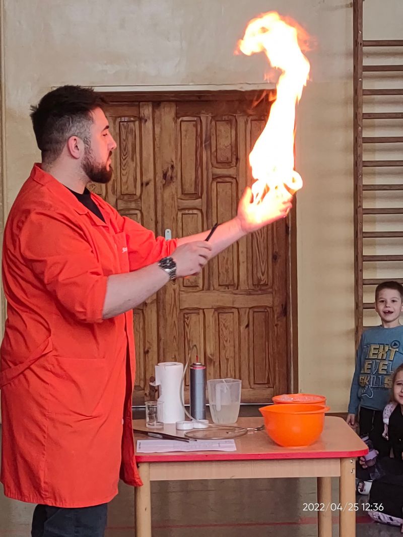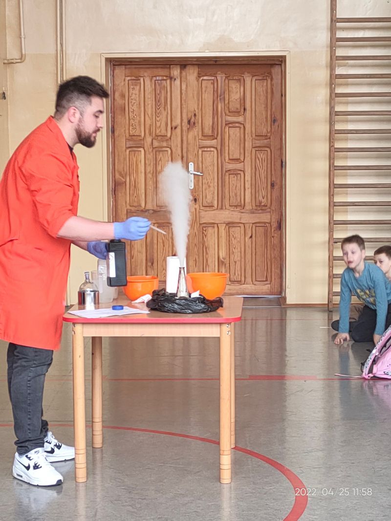 Uczniowie mogli poznać bliżej tajniki właściwości fizycznych substancji otaczających nas każdego dnia. Nie zabrakło wybuchów, ognia, pary, a wszystko to w ramach projektu "Chemia okiem Fizyka"