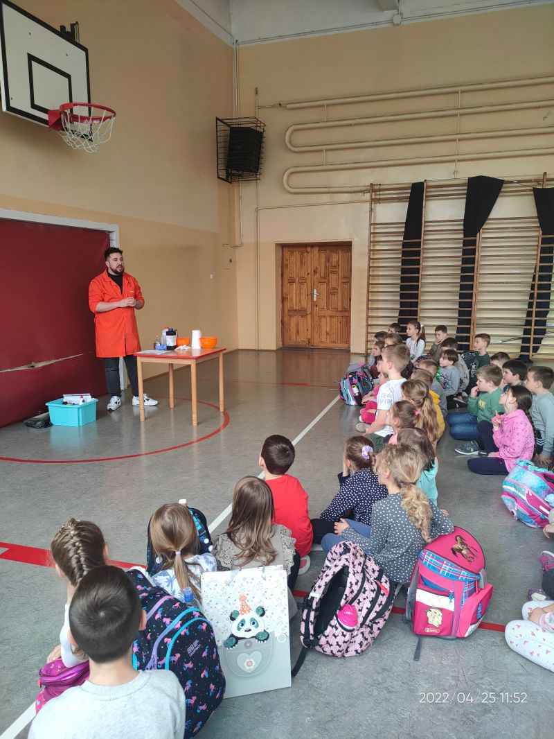 W poniedziałek 25 kwietnia uczniowie klas pierwszych brali udział w pokazie, przygotowanym przez Jarosława Rybusińskiego, wykładowcy Uniwersytetu Warszawskiego Wydziały Fizyki..