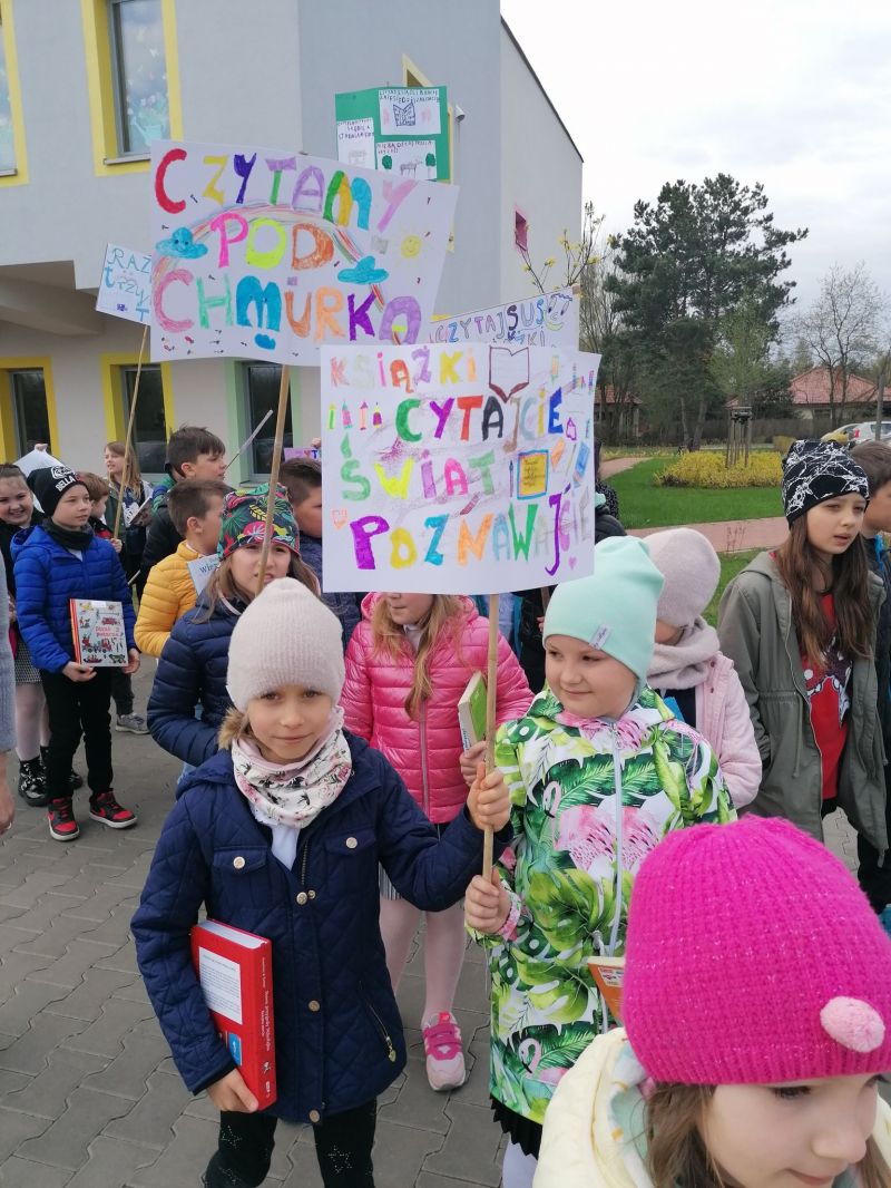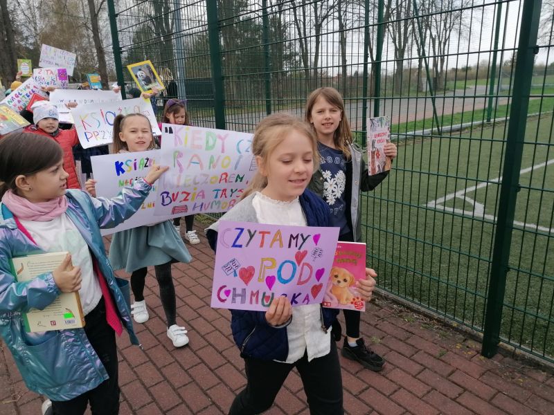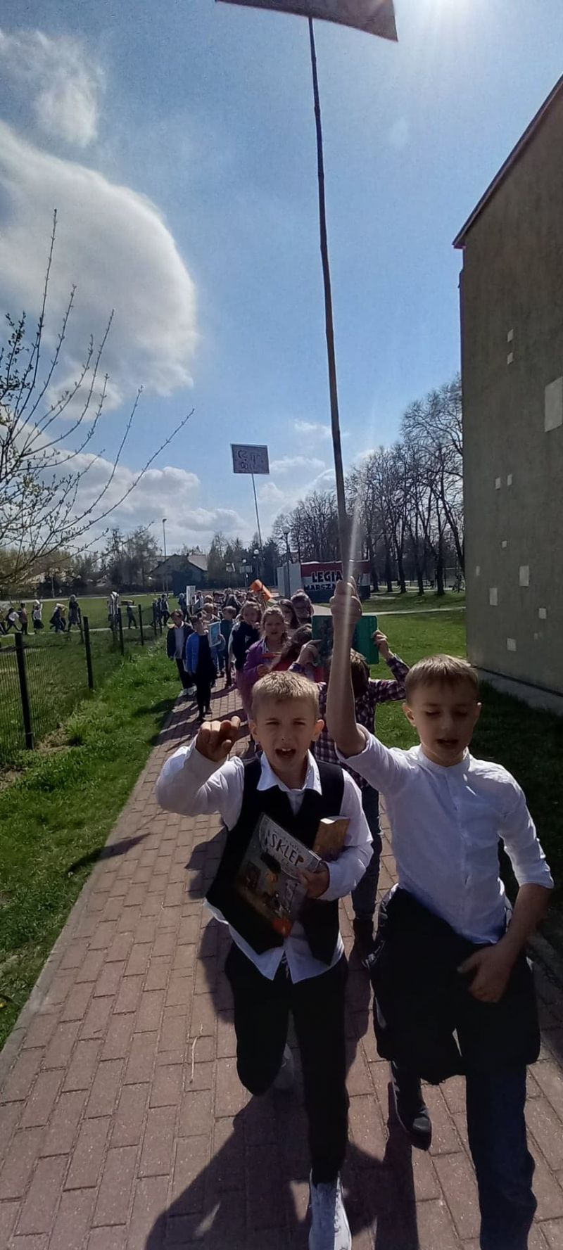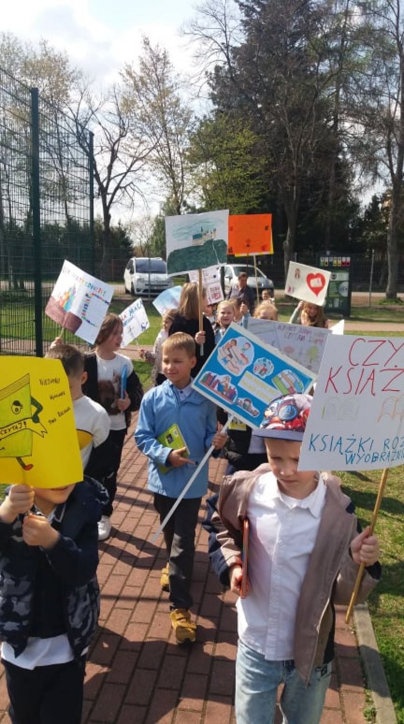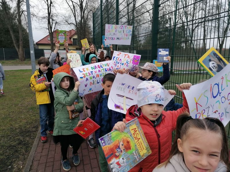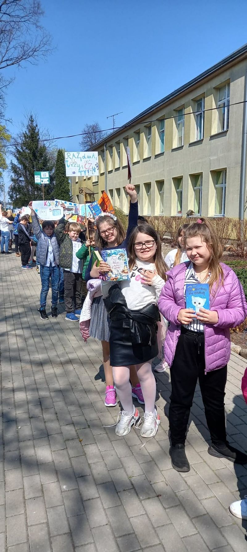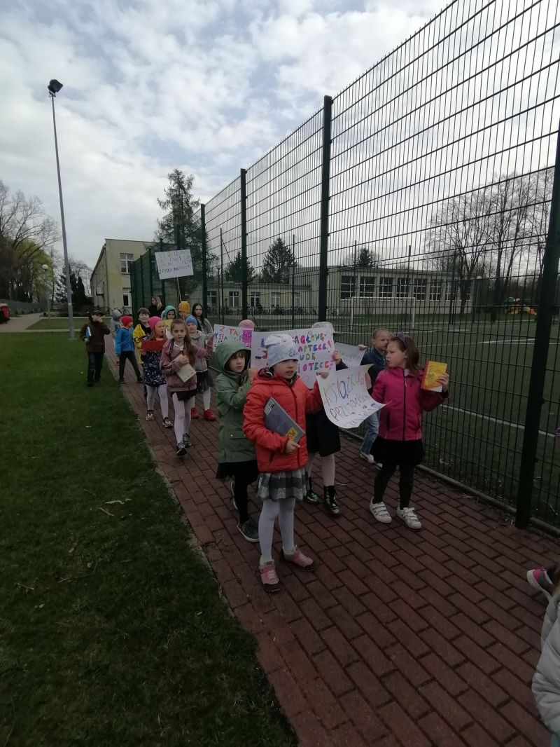 węża, skandując hasła zachęcające do czytania książek chodzili wokół szkoły