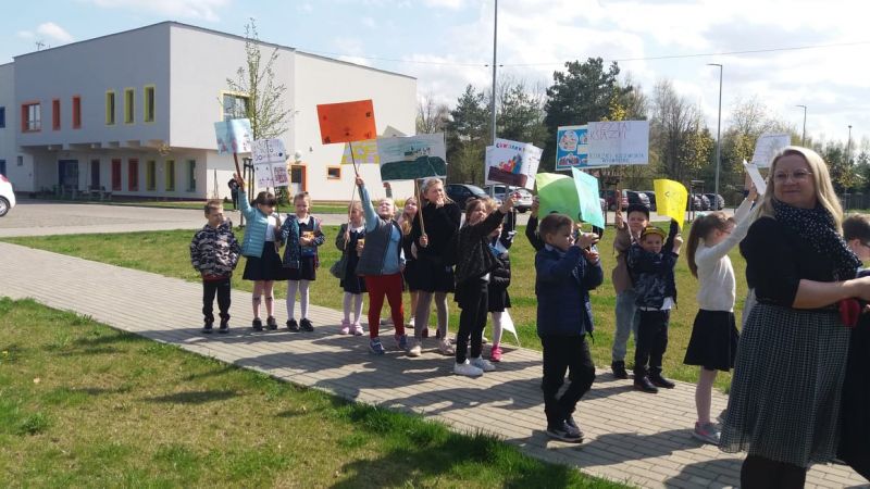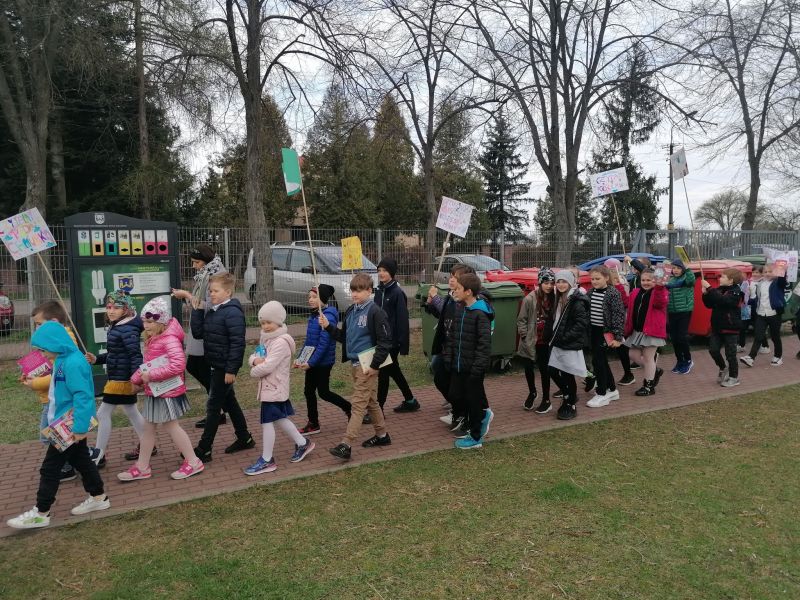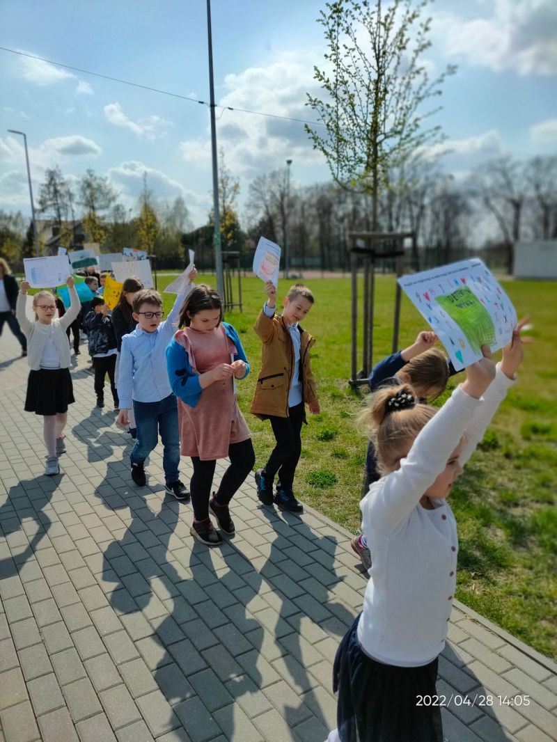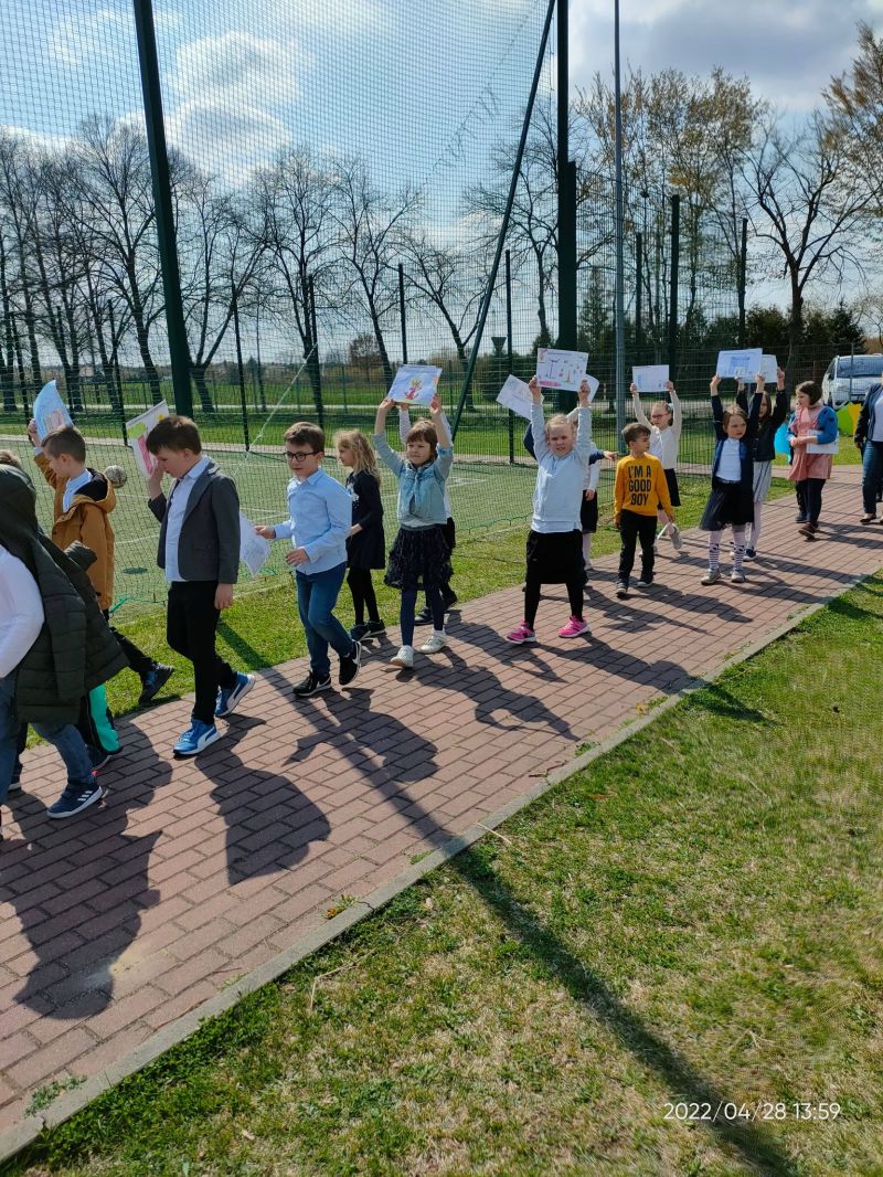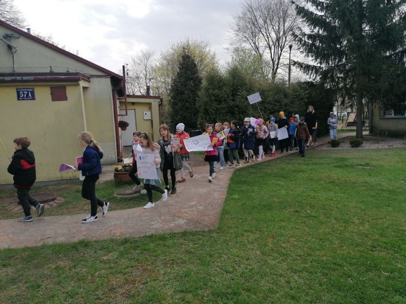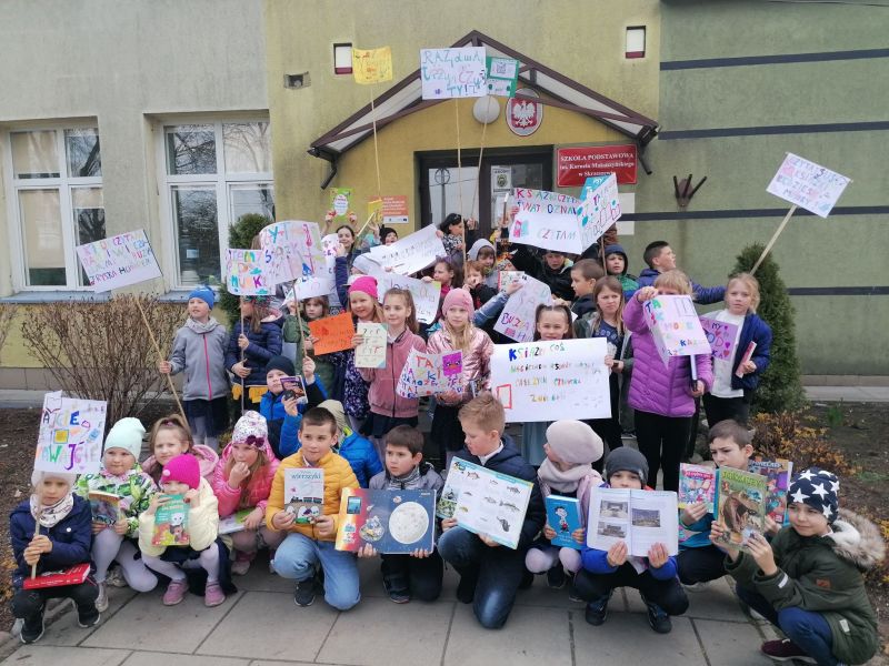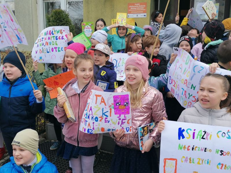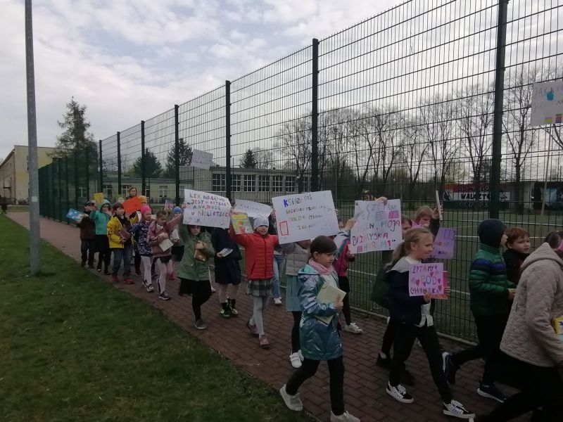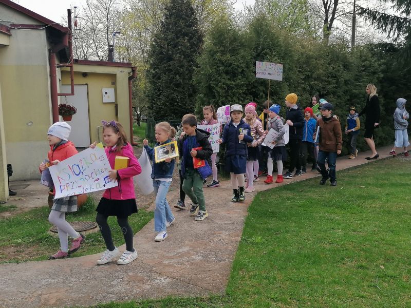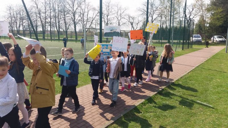 węża, skandując hasła zachęcające do czytania książek chodzili wokół szkoły