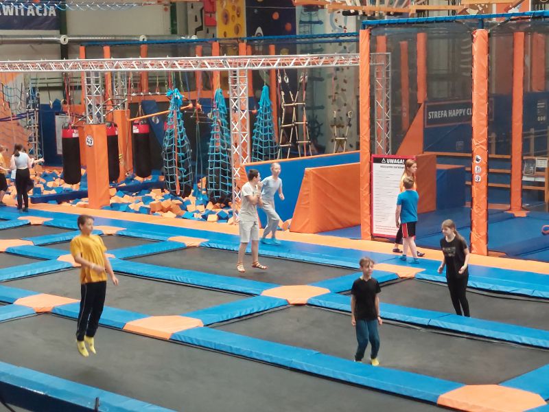 To park trampolin, który odwiedzili uczniowie klasy 6b. Po dwóch godzinach beztroskiej zabawy uczniowie zmęczeni, ale bardzo zadowoleni opuścili stację z nadzieją, że jeszcze nie raz przekroczą jej progi.