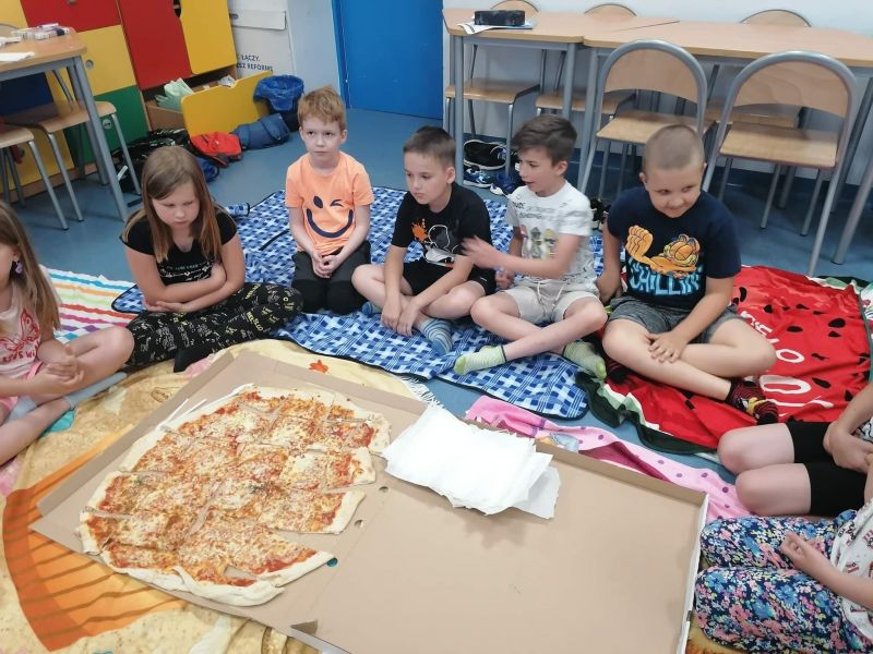 Mimo złej pogody klasa 2A odpoczywała podczas pikniku w klasie.