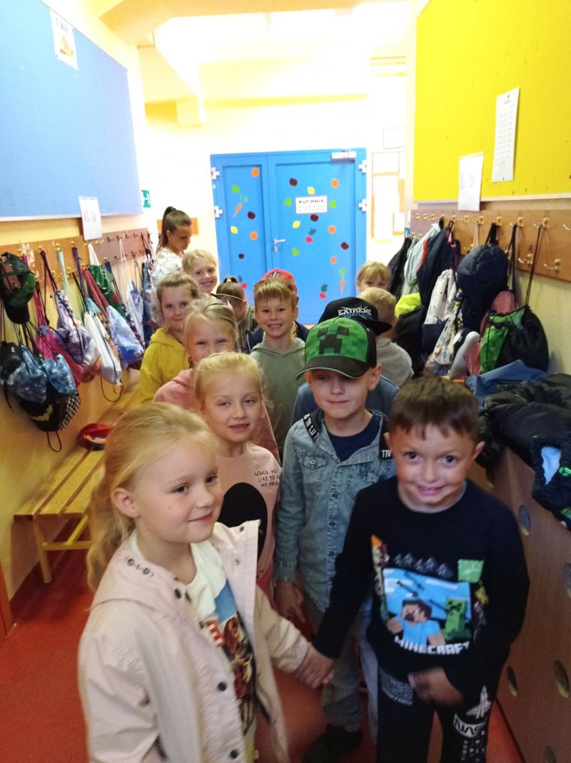 Klasa Ib wybrała się na pierwszy spacer. Wybraliśmy się na skrzyżowanie ulic, przy którym znajduje się przejście dla pieszych. Pierwszaki przypomniały sobie zasady bezpiecznego przechodzenia przez jezdnię. Pierwszy sprawdzian wiedzy zdały celująco.