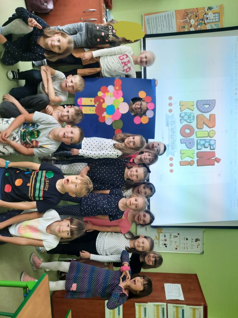 Dzień Kropki to święto kreatywności, rozwijania ukrytego talentu, wiary we własne możliwości, a przede wszystkim zabawy. I dlatego uczniowie klas I – III naszej szkoły ponownie aktywnie włączyli się w obchody tego święta. We wszystkich działaniach dzieci motywem przewodnim była kropka. Uczniowie założyli ubrania w kropki, pomalowali twarze, obejrzeli film o małej Vasthi, śpiewali piosenki o kropce, powstały kropkowe „dzieła sztuki”. W zabawach ruchowych również dominowały wesołe, kolorowe kropki. Święto Kropki i Nasthi uświadomiły wszystkim, że każdy ma jakiś talent, który czasami drzemie gdzieś głęboko i czeka na odkrycie. DZIEŃ KROPKI W KLASACH I- III