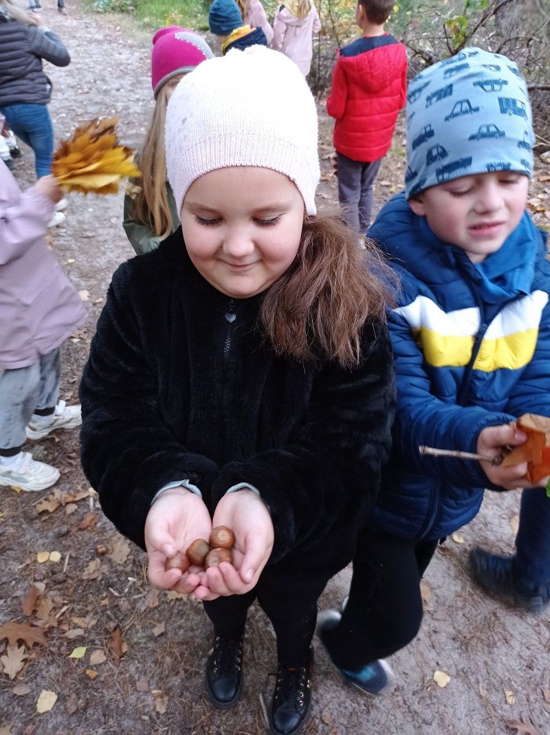W trakcie spaceru dzieci obserwowały zmiany, jakie zachodzą w przyrodzie jesienią, poznawały nazwy drzew, uczyły się rozpoznawać ich liście oraz zbierały również ich owoce m.in. kasztany, klonowe noski, jarzębinę, żołędzie i ich czapeczki. Las jesienią wygląda pięknie, a liście rumienią się tysiącem kolorów. Ponadto pozwala na zacieśnienie więzi między pierwszakami, a także daje wiele chwil radosnej zabawy.