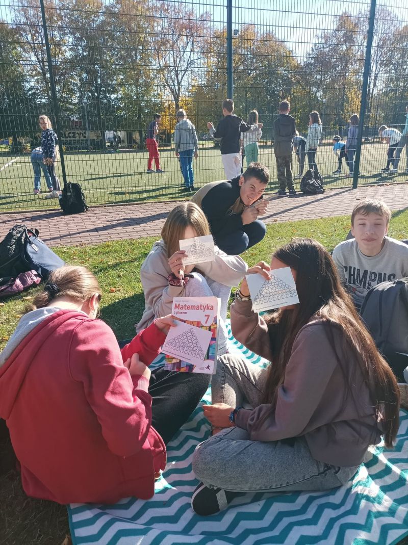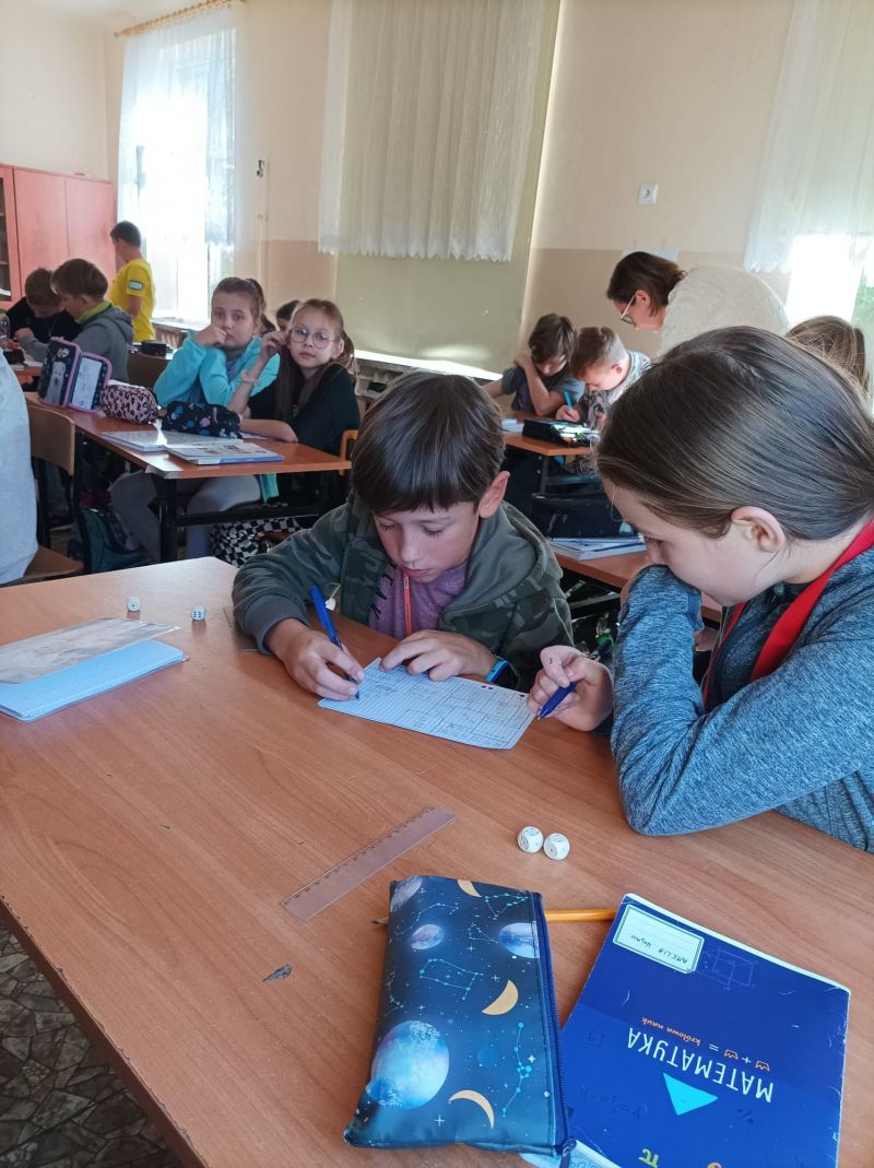 Uczniowie na lekcjach matematyki rozwiązywali łamigłówki z tabliczką mnożenia i rywalizowali ze sobą w grze Rysujemy tabliczkę mnożenia.