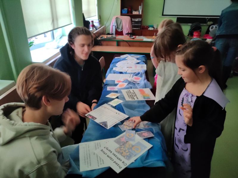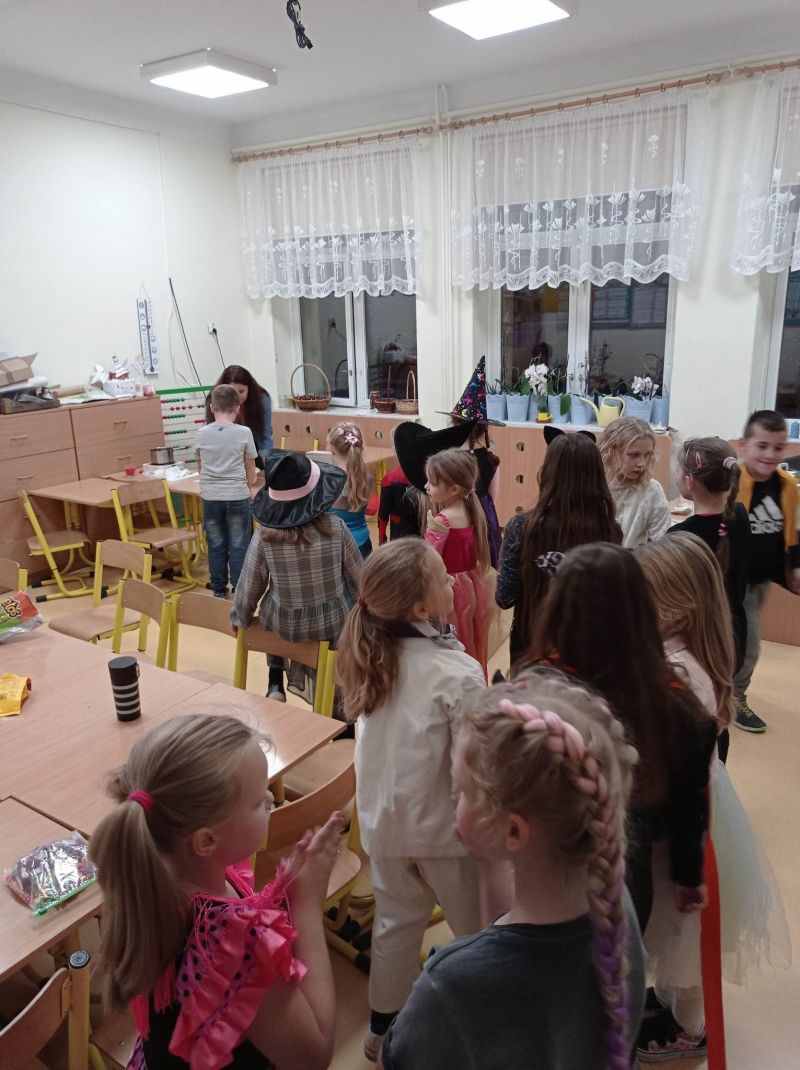Zabawa andrzejkowa sprzyjała integracji dzieci z różnych klas.