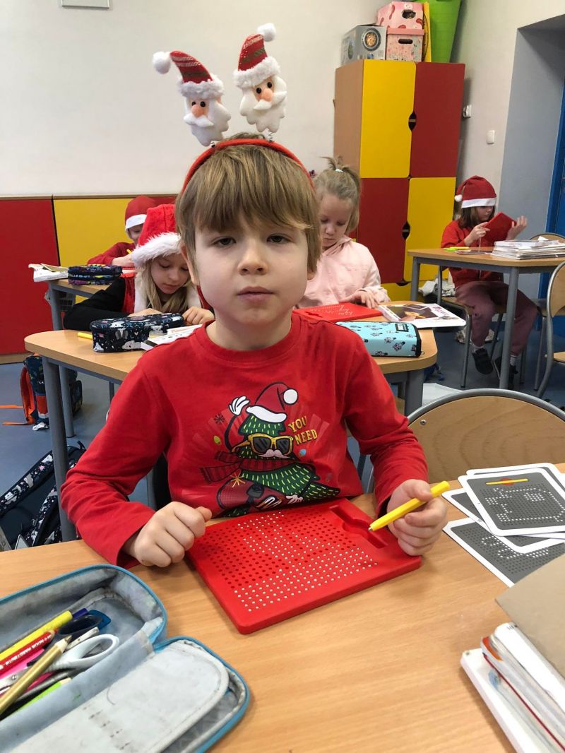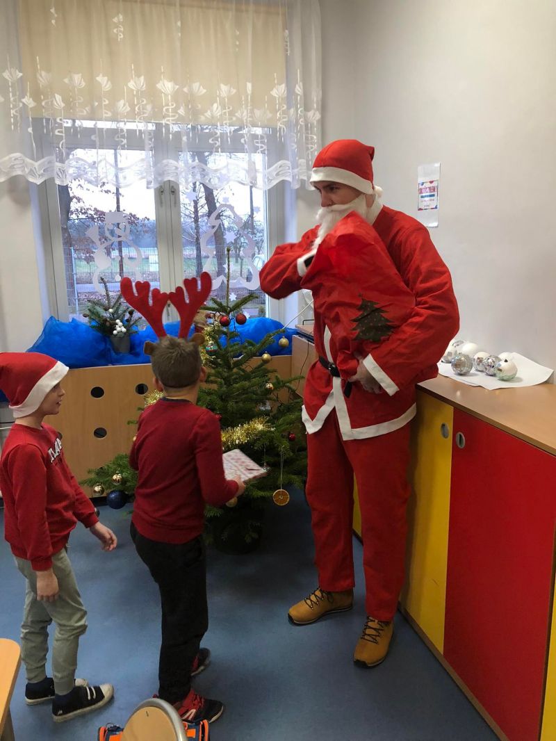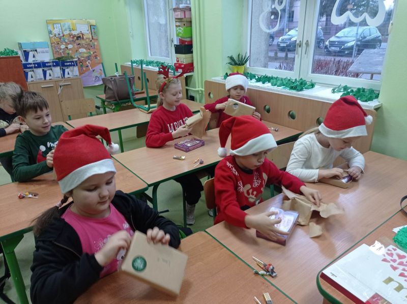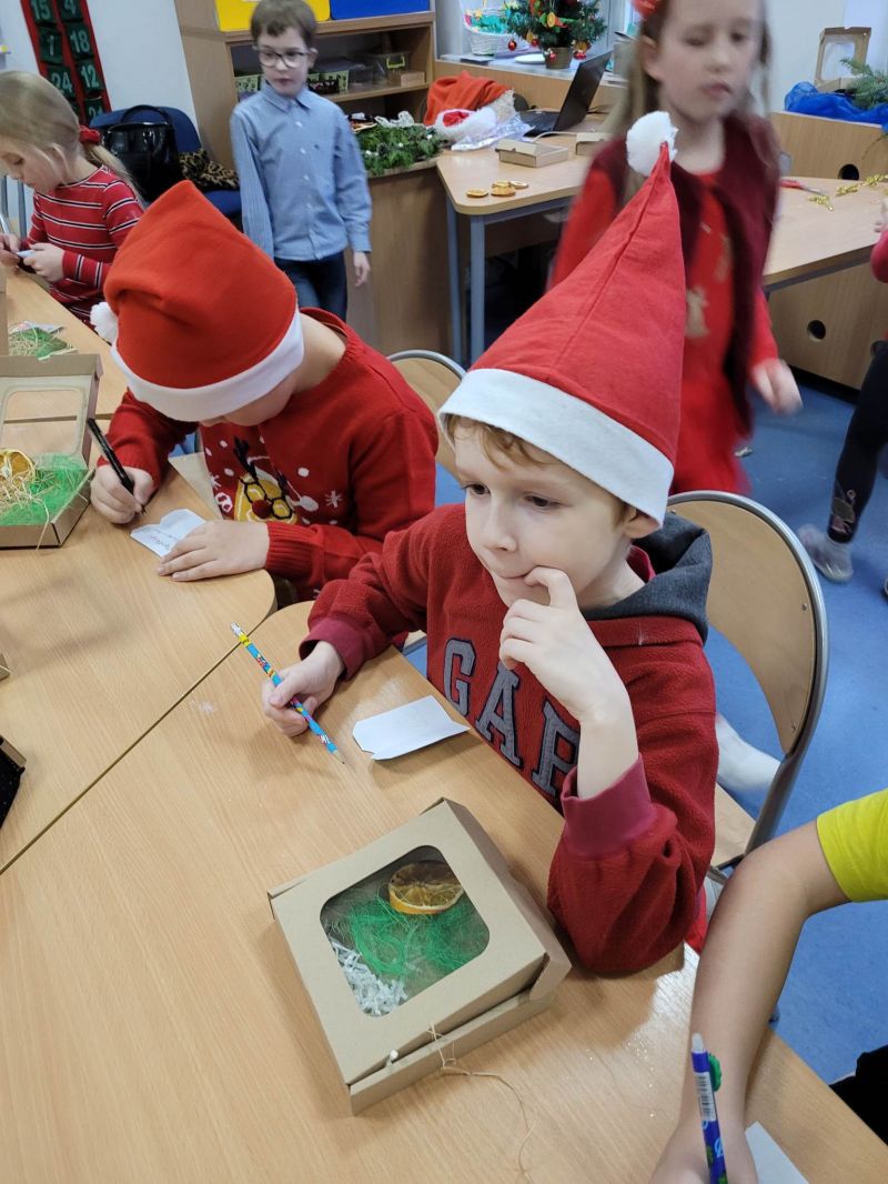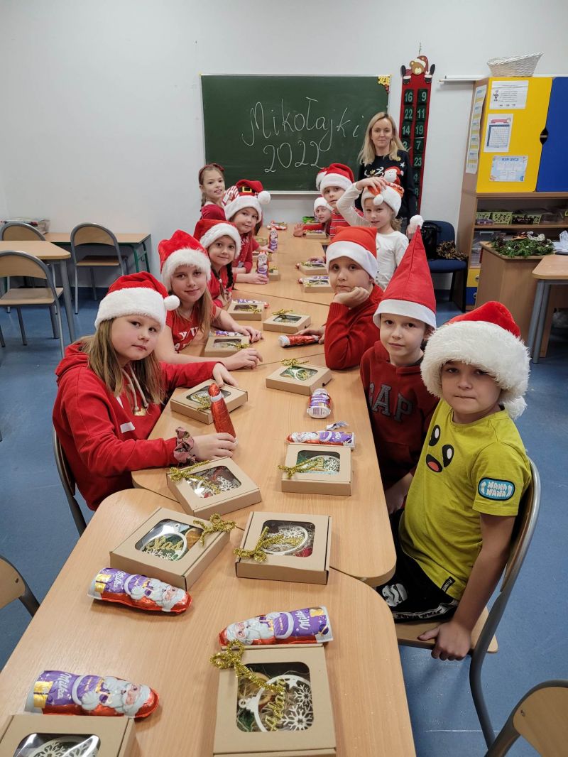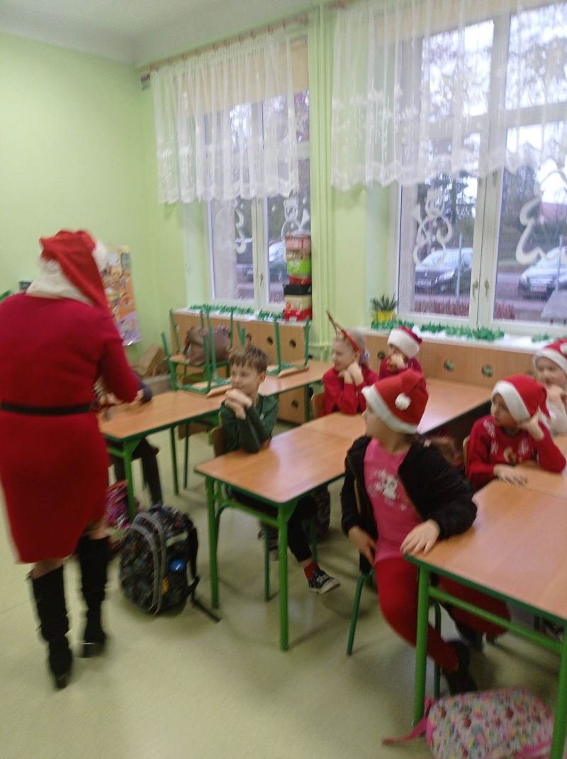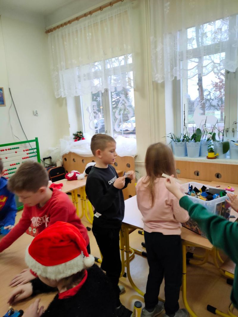 Świętego Mikołaja. Tegoroczne Mikołajki uczniowie klas I-III obchodzili bardzo różnie. Uczniowie ubierali choinki, bawili się klockami Lego, uczyli się śpiewać świąteczne piosenki. Do klasy zawitał Święty Mikołaj i jego pomocnicy- Pani Mikołajowa. Mikołaj przysłał ich na warsztaty plastyczne, podczas których uczniowie wykonywali świąteczne bombki, które przekazali swoim kolegom z klasy.