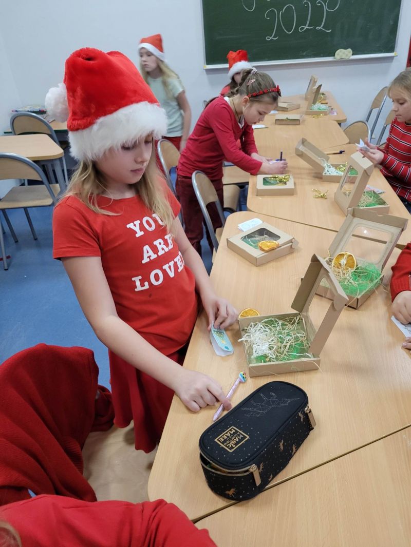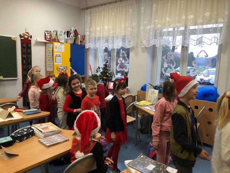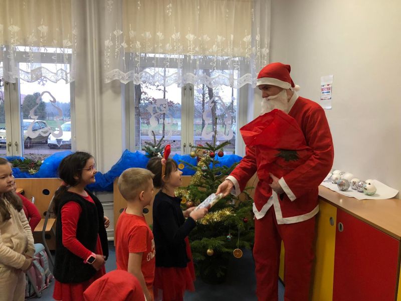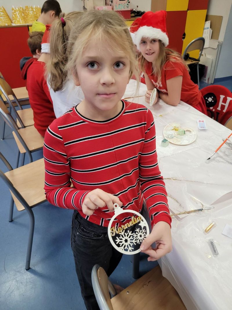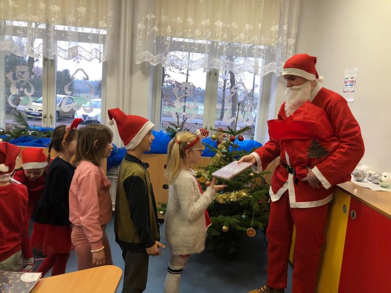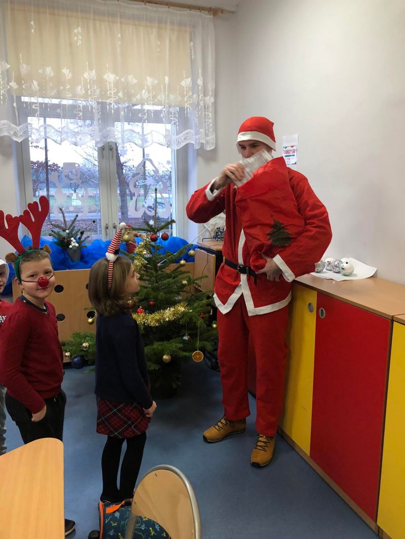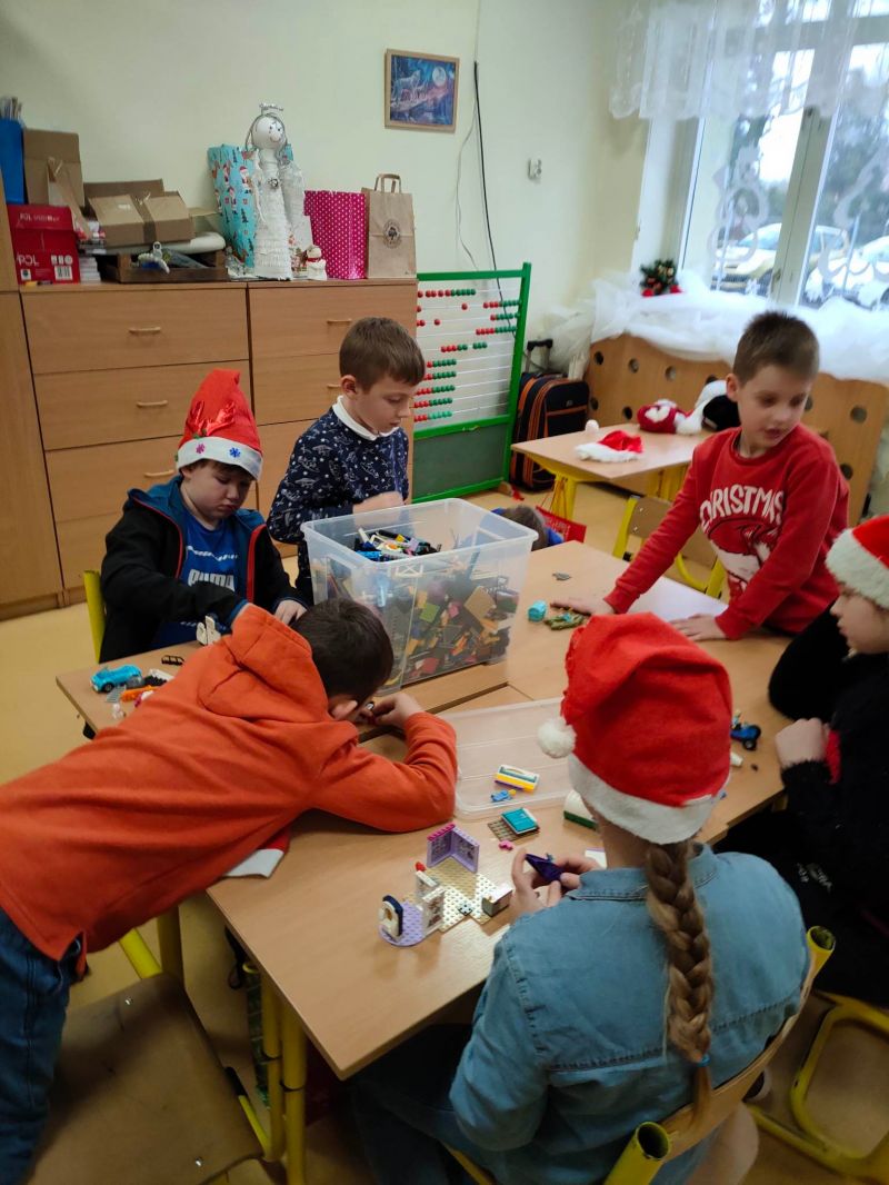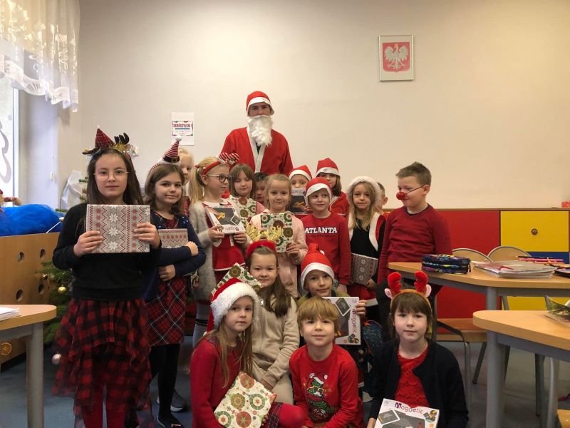 Świętego Mikołaja. Tegoroczne Mikołajki uczniowie klas I-III obchodzili bardzo różnie. Uczniowie ubierali choinki, bawili się klockami Lego, uczyli się śpiewać świąteczne piosenki. Do klasy zawitał Święty Mikołaj i jego pomocnicy- Pani Mikołajowa. Mikołaj przysłał ich na warsztaty plastyczne, podczas których uczniowie wykonywali świąteczne bombki, które przekazali swoim kolegom z klasy.