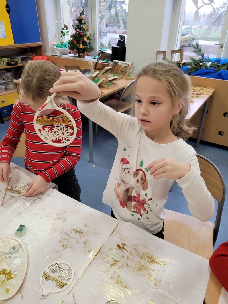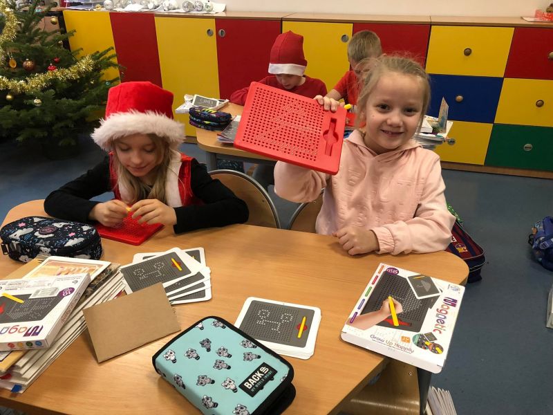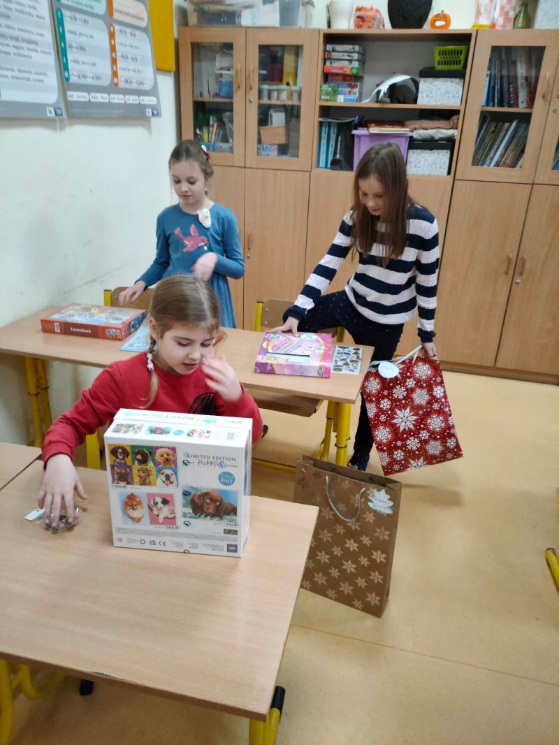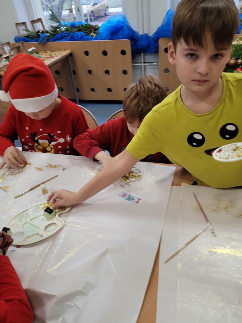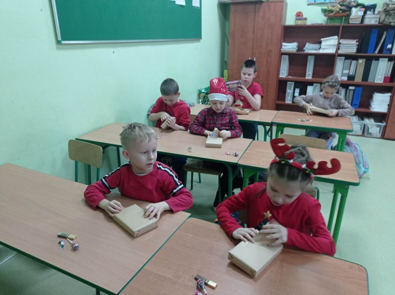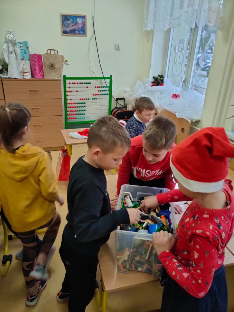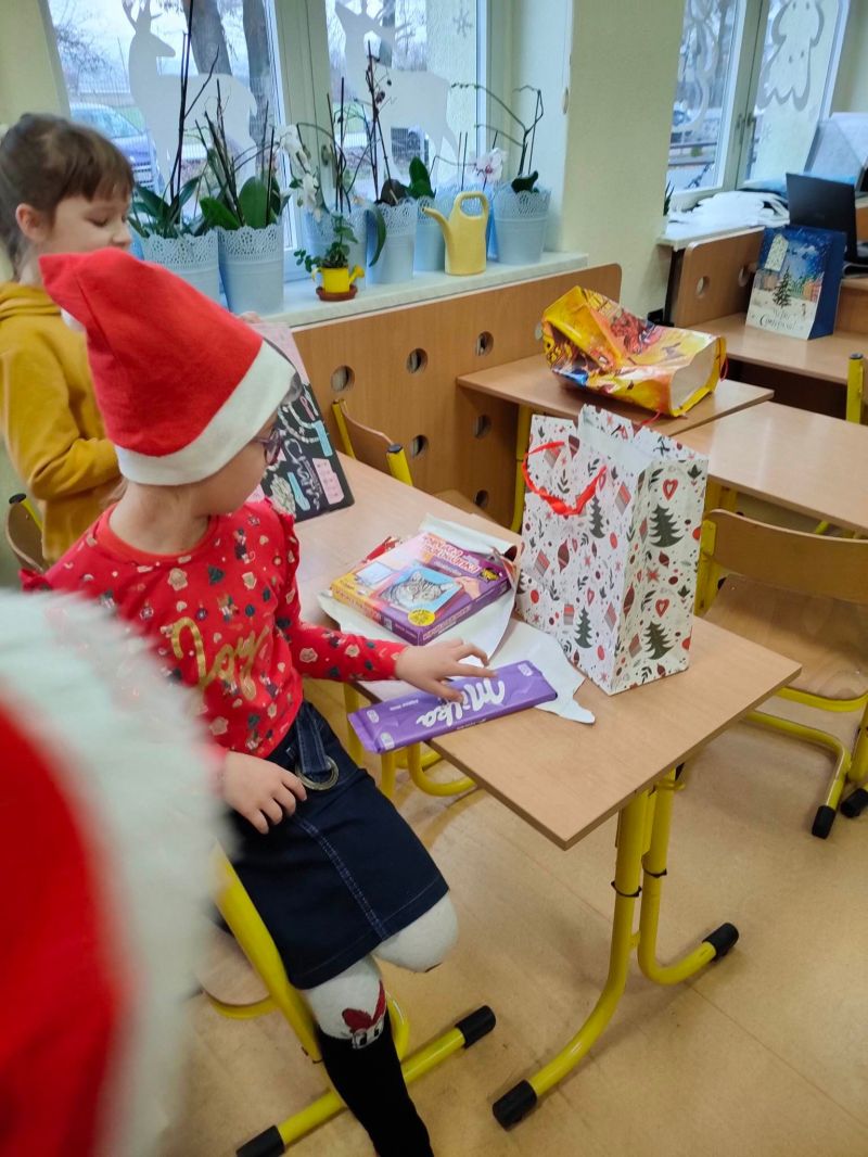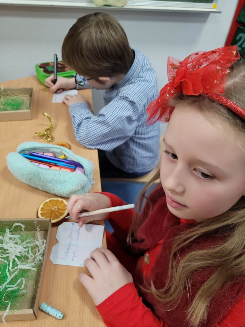 Świętego Mikołaja. Tegoroczne Mikołajki uczniowie klas I-III obchodzili bardzo różnie. Uczniowie ubierali choinki, bawili się klockami Lego, uczyli się śpiewać świąteczne piosenki. Do klasy zawitał Święty Mikołaj i jego pomocnicy- Pani Mikołajowa. Mikołaj przysłał ich na warsztaty plastyczne, podczas których uczniowie wykonywali świąteczne bombki, które przekazali swoim kolegom z klasy.