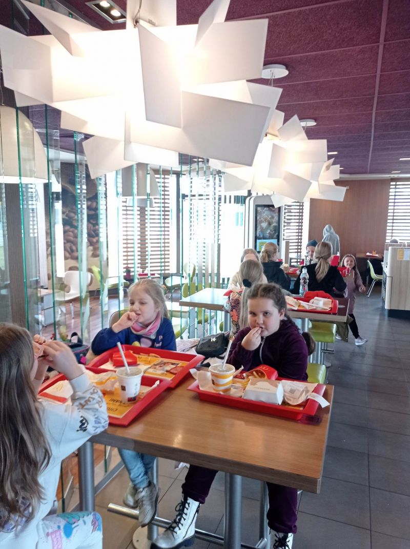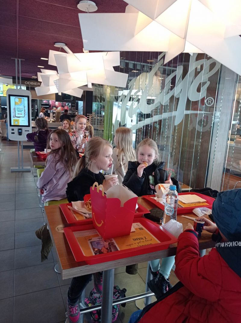 W dniu 23 marca klasa 1b wybrała się na wyjątkową wycieczkę. Dzielni uczniowie dojechali do kina w Legionowie autobusem komunikacji miejskiej. Znakomicie pokazali jak kulturalnie należy zachowywać się w miejscach publicznych. Po obejrzeniu wzruszającego filmu " Pimi w Krainie Tygrysów" wzmocniliśmy siły wspólnym posiłkiem. Dzieciaki wrócili radośni i pełni nadziei na następną wycieczkę.