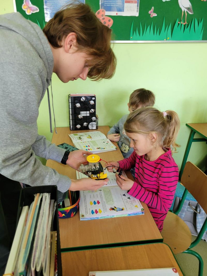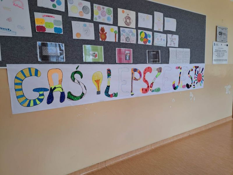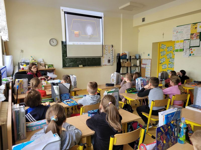 Przy włącznikach światła oraz na drzwiach sal lekcyjnych umieściliśmy piktogramy przypominające o wyłączaniu światła oraz akcji. Przy wejściu do szkoły zawisła gazetka na temat prądu, bezpieczeństwa korzystania z urządzeń elektrycznych oraz sposobów oszczędzania energii. Dzieci wykonały kolorowe plakaty dotyczące oszczędzania energii. Uczniowie klasy 8 c przeprowadzili kilka lekcji ze swoimi młodszymi koleżankami i kolegami na w/w tematy. Dzieciaki wykazały się rozległą wiedzą i ogromnym zainteresowaniem.